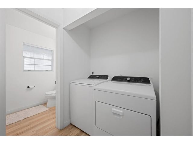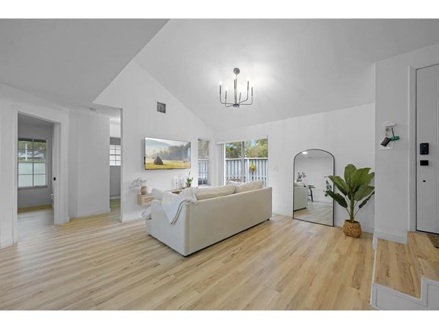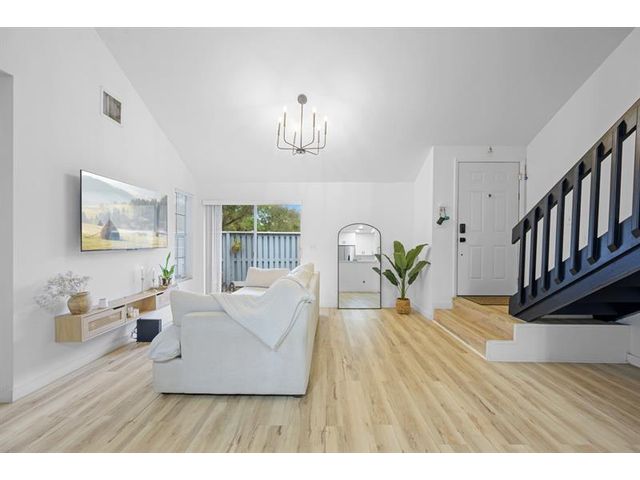 Beautifully updated 2-bed/2-bath fee-simple townhouse in North Lauderdale. This move-in-ready home features vinyl wood flooring, popcorn ceiling removal, and a 2023 A/C. The renovated kitchen includes quartz countertops, backsplash, and new appliances. Functional layout offers a full bedroom and full bath downstairs, plus a private primary bedroom upstairs with its own updated bath. Both bathrooms feature new sinks, toilets, and showers. In-unit washer/dryer included. Built in 1986 with 948 sq ft, this two-story home is centrally located near shopping, dining, and major roadways.
