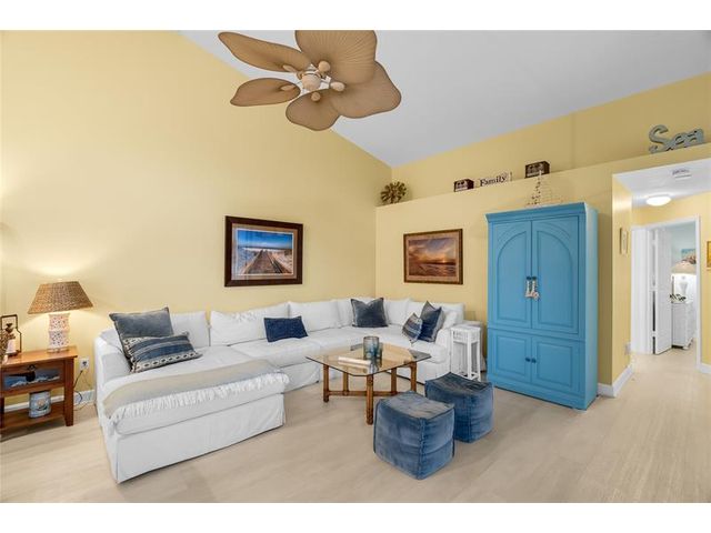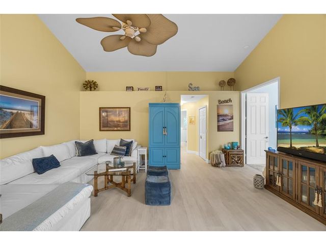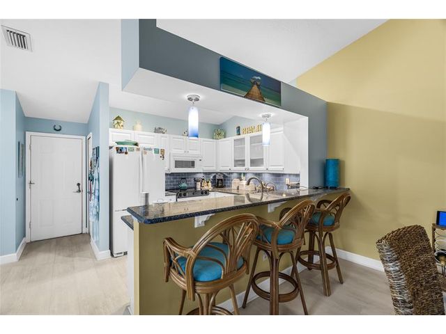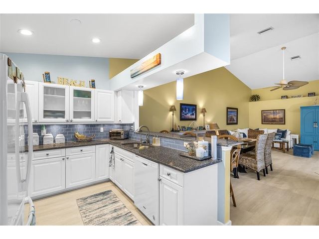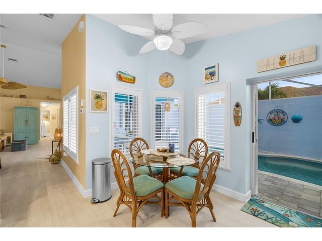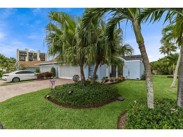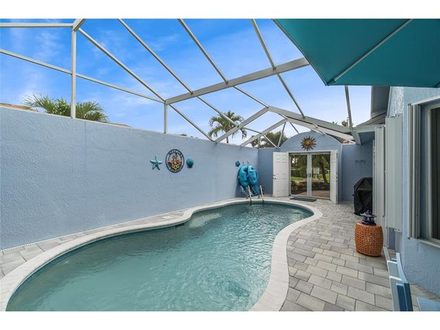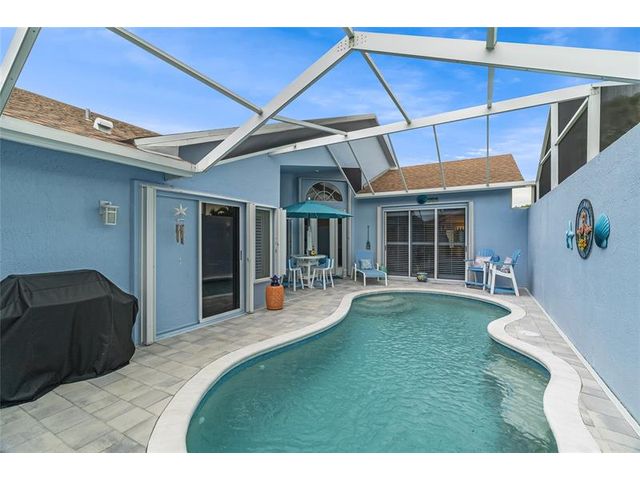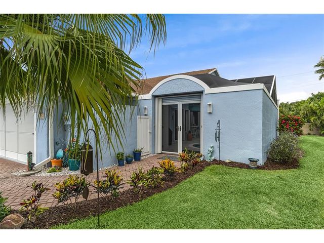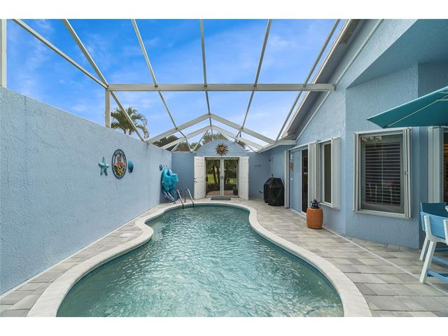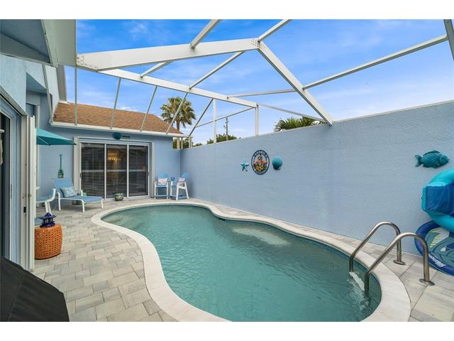 Embrace the Florida lifestyle in this bright 3 bed, 2 bath beachside retreat with private pool! Just a short distance from the beach with private access, this coastal inspired home is full of cheerful design touches, from the whitewashed wood look laminate flooring to the fresh, vibrant wall colors, and white cabinetry with a decorative blue tile backsplash. The outdoor area includes a screened pool and patio. An outdoor shower is convenient for the beach. Additional features include a 2-car garage, laundry sink in the garage, 2021 roof, and accordion shutters.