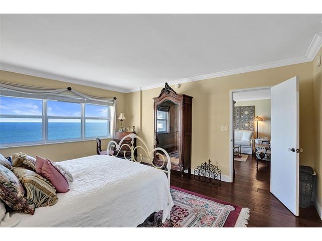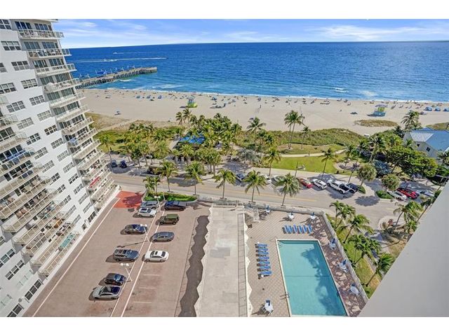 WATCH THE SUNRISE AND SUNSET FROM THIS BEAUTIFUL UNIT WITH DIRECT OCEAN, POMPANO PIER, WEST VIEWS OF INTRACOASTAL, CITY. UPDATED 2 BEDROOM, 2 BATH UNIT. SPACIOUS PRIMARY BEDROOM WITH DIRECT OCEAN VIEWS, LARGE PRIMARY BATH & WALK IN CLOSET. OPEN FLOOR PLAN, KITCHEN WITH PLENTY OF CABINTRY, STAINLESS STEEL APPLIANCES & GRANITE COUNTERS, HARDWOOD FLOORING THROUGHOUT, IMPACT WINDOWS & DOORS, STORM SHUTTERS, NEWER WASHER & DRYER IN UNIT, 2022 A/C AND WATER HEATER, GARAGE PARKING SPACE, CROWN MOLDING, REDONE ELECTRICAL PANEL. PLENTY OF GUEST PARKING. AMENITIES INCLUDE POOL. LIBRARY, COMMUNITY ROOM, GAME ROOM, EXTRA STORAGE, PET FRIENDLY 1 PET/MAX 25lbs, 24 HOUR SECURITY, GYM. STEPS FROM POMPANO PIER, PLENTY OF RESTAURANTS, SHOPPING AND MINUTES FROM GOLFING AND PICKLE BALL. A MUST SEE UNIT!!!