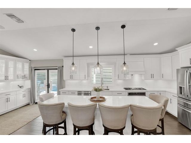 4BR/3BA | 2,751 SF | Corner lot | Split floor plan. Addition & full remodel in 2019. Two bedrooms with direct access to back patio & pool. Vaulted ceilings, high-hat lighting, Lutron lighting system, plantation shutters, working fireplace. Pool & jacuzzi. 22KW whole-house generator with buried 500-gallon tank servicing gas cooktop, water heater & outdoor grill. Addition included new metal roof & new appliances including built-in microwave & wine cooler. PVC plumbing, impact windows, doors & garage door, updated electrical. Two HVAC systems plus garage mini-split. Epoxy garage floors. Spray foam attic insulation. Whole-house wired AV & hard-wired camera system. Fully fenced with sprinkler system, landscape & soffit lighting, & privately enclosed side yard for storage or boat/vehicle parking