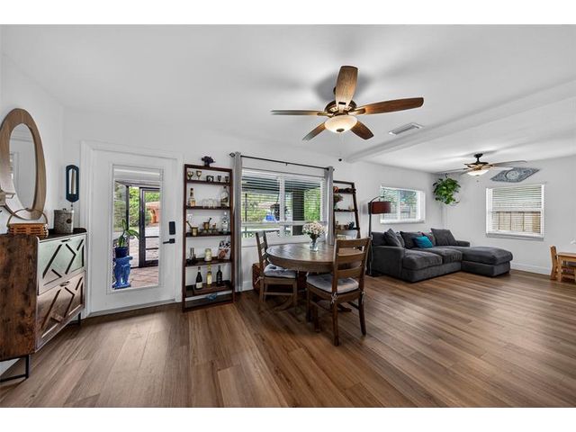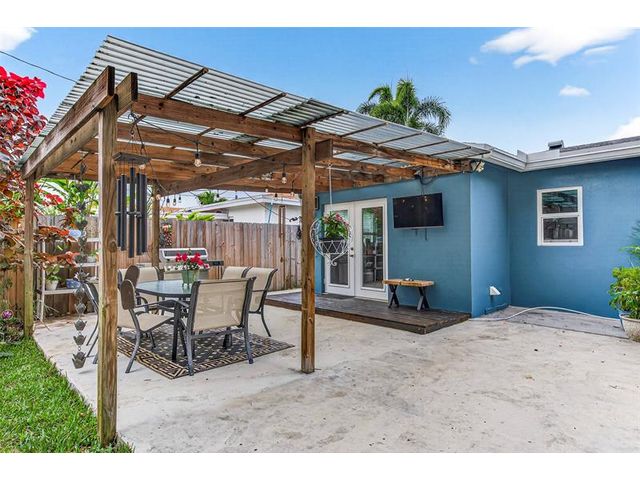 Welcome to this beautifully updated 2/2 home that truly hugs you. Thoughtfully designed for comfort & functionality, featuring vinyl flooring & kitchen complete w/ granite counter tops, custom pantry & pot filler above stove. Enjoy the back room ideal for a home office/den, with French doors that open to a backyard oasis. Outside, you’ll find lush landscaping, a privacy fence, & pergolas that extend the living space outdoors, creating the perfect setting for relaxation. Additional highlights include a screened front porch, new roof 2023, impact windows 2020, electric panel 2014 & tankless water heater. This inviting home blends updates, flexibility, and outdoor living in a truly special way. Walking distance to the heart of Oakland Park, pickleball courts & so much more.