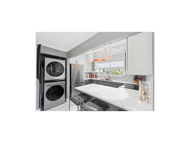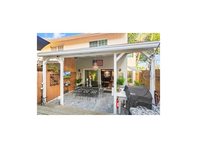 Exquisite waterfront townhome, rarely available end-unit with north, west, and south exposures, providing exceptional natural light. Located just blocks from the WM entertainment district. Features dramatic open entry, formal dining, breakfast bar, stainless steel appliances, and quartz countertops. New Vico hurricane-impact windows and patio doors, porcelain tile on the main level, and hardwood floors upstairs. Two walls of sliding doors open to a spectacular new covered patio with new landscaping, gardens, grill/bar area, marble pavers, bamboo accents, and private outdoor spaces. Seawall completed in 2024. Unobstructed water views, fenced side yard, gate, dog run, two parking spaces. HOA includes hurricane and flood insurance. Appraised at $650,000 (4/10/25), prior to recent improvements