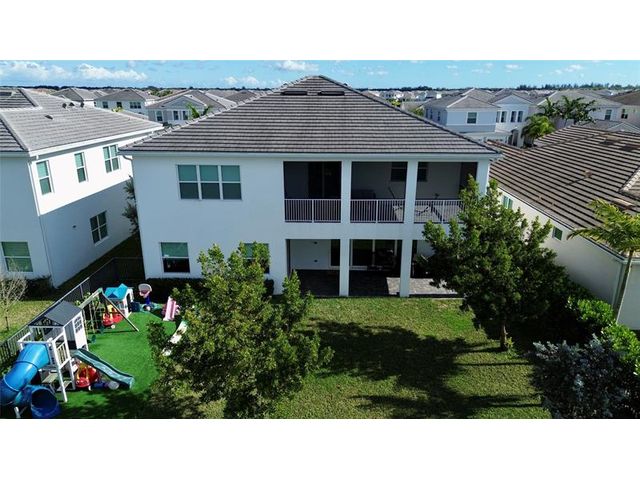 Step into this beautifully upgraded two-story home in Westlake, featuring a grand spiral staircase, elegant porcelain tile flooring, a designer foyer light, impact windows throughout, and a 3-car garage with built-in cabinets and overhead storage. The owner’s suite showcases a rare structural balcony upgrade, custom closets, and serene lake views. A dedicated office with built-ins, a custom closet in the second bedroom, wood-look flooring from the staircase through the second floor, and a turf backyard ideal for play. Enjoy a complete home water filtration system, tankless water heater, and fenced yard. Westlake offers resort-style amenities including a pool, splashpad, snack shack, dog park, basketball courts, and expanding retail and dining options within this vibrant, growing community.