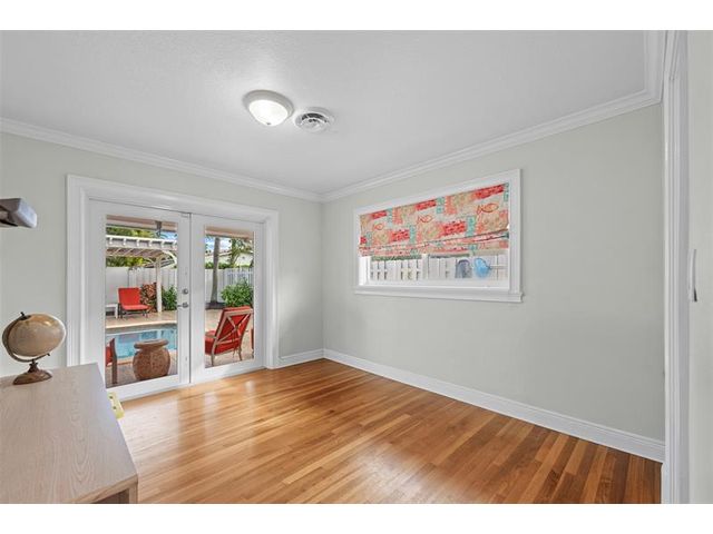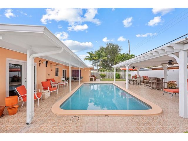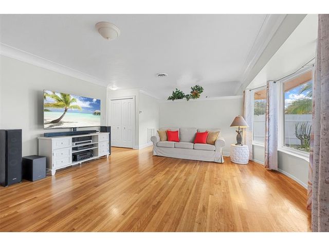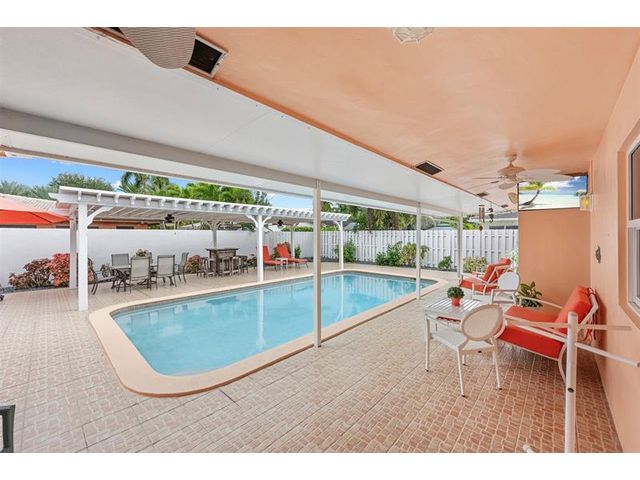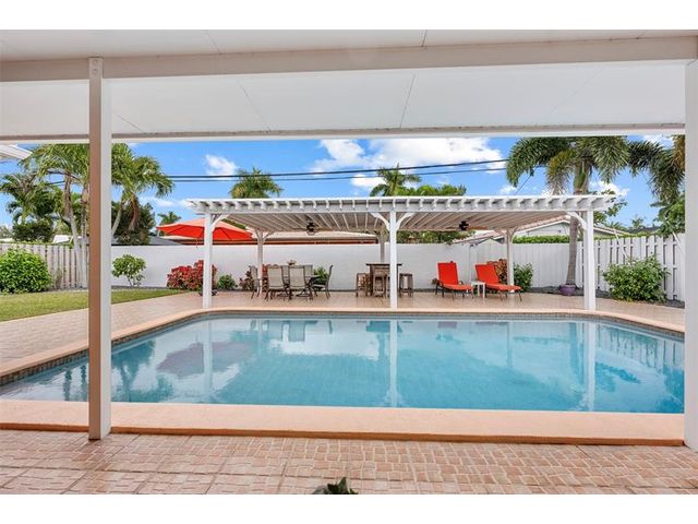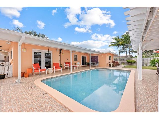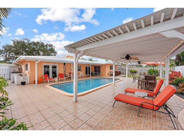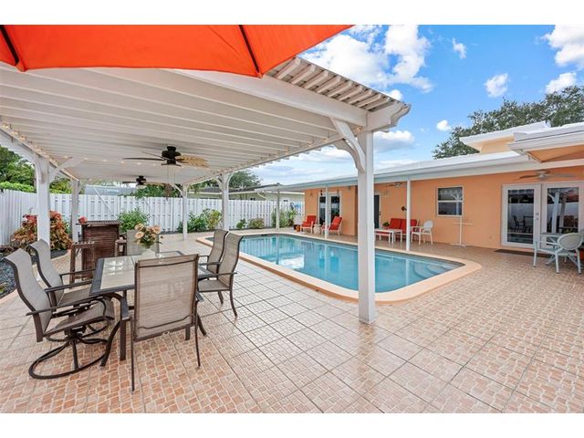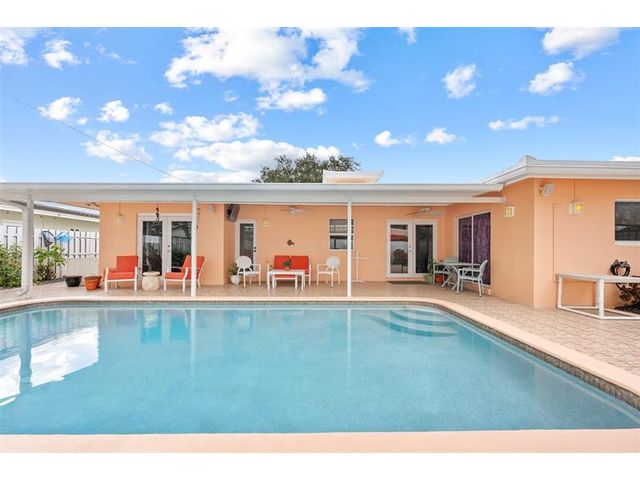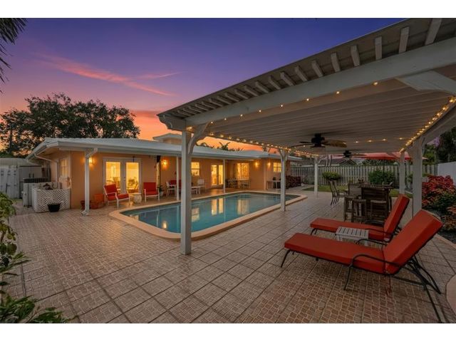 Meticulously maintained and move-in ready, this 3 bedroom + den, 3 bathroom pool home offers a rare true three-way split floor plan designed for privacy and comfort. Freshly painted inside and out with hardwood and tile floors, new carpet, A-rated impact windows and doors, 2019 AC, tankless water heater, and updated electrical panels. Kitchen with soft-close wood cabinetry, stainless steel appliances and large pantry. Layout includes a master, junior primary suite, custom built-in closets, tons of storage, laundry utility room and cabana bath. Outdoor living shines with a fully covered patio, oversized pergola, pavers, ceiling fans and speakers, auto sprinklers, fully fenced yard and two oversized sheds. Gas water heater and dryer. No flood zone or HOA. Less than 2 miles from the beach!