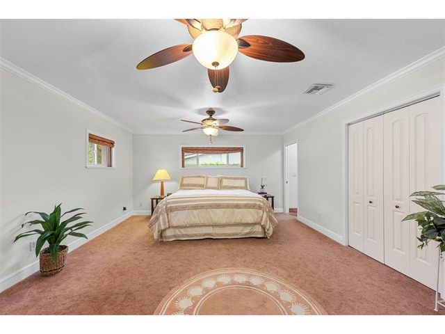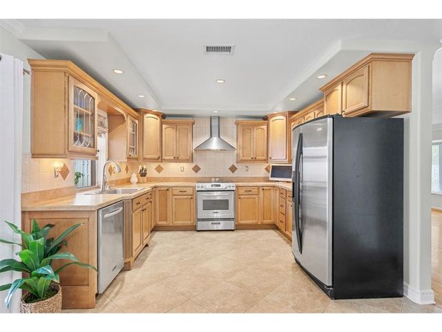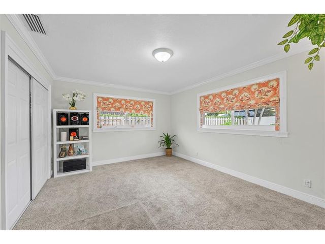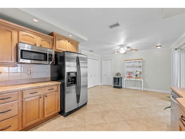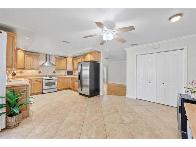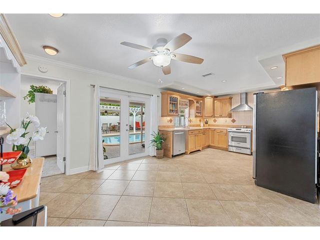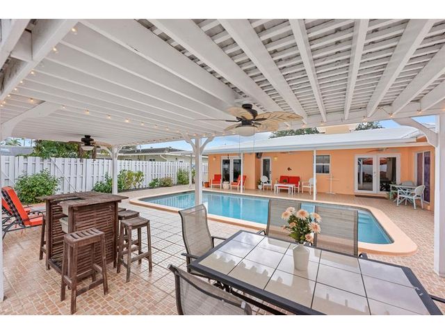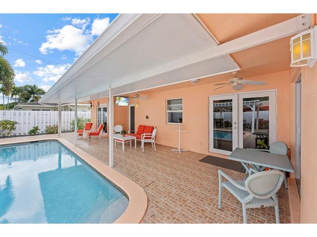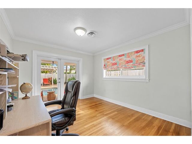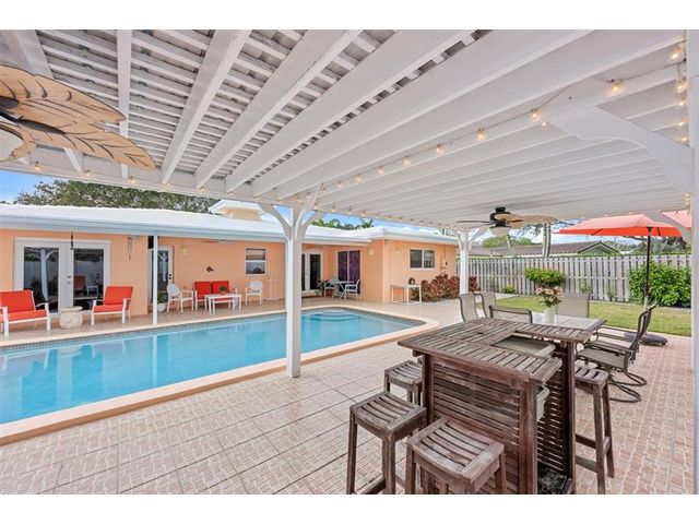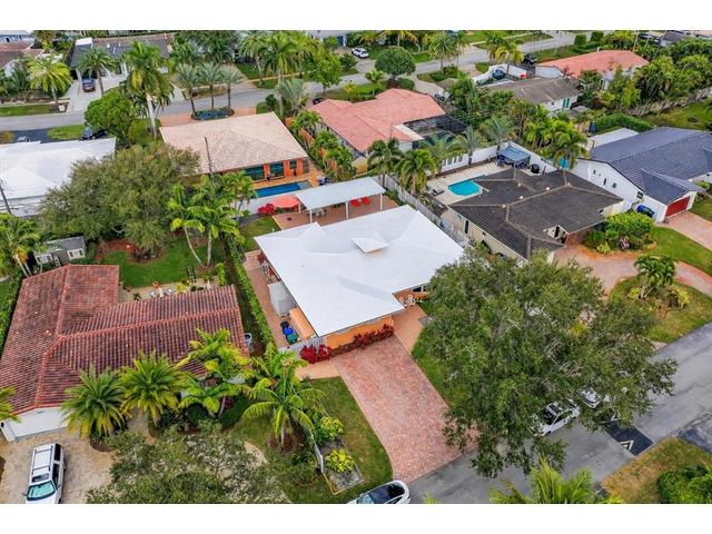 Meticulously maintained and move-in ready, this 3 bedroom + den, 3 bathroom pool home offers a rare true three-way split floor plan designed for privacy and comfort. Freshly painted inside and out with hardwood and tile floors, new carpet, A-rated impact windows and doors, 2019 AC, tankless water heater, and updated electrical panels. Kitchen with soft-close wood cabinetry, stainless steel appliances and large pantry. Layout includes a master, junior primary suite, custom built-in closets, tons of storage, laundry utility room and cabana bath. Outdoor living shines with a fully covered patio, oversized pergola, pavers, ceiling fans and speakers, auto sprinklers, fully fenced yard and two oversized sheds. Gas water heater and dryer. No flood zone or HOA. Less than 2 miles from the beach!