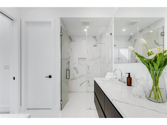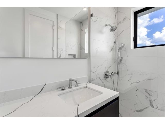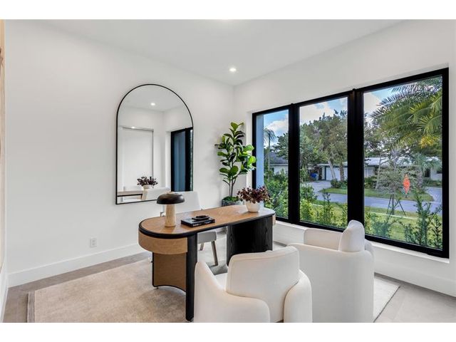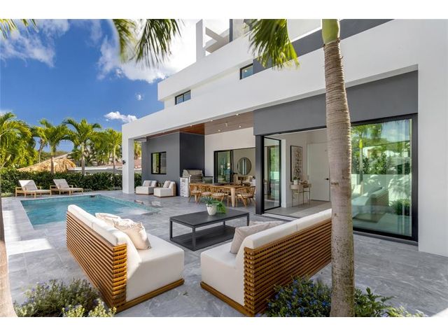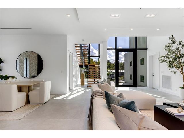 New-Construction Modern Residence artfully crafted by Garza Contractors in the exclusive enclave of Hillsboro Shores with private beach access just a short stroll away. Light-filled interiors reveal five-bedrooms, five-bathrooms and with 3,638+/- Total SqFt. The first-floor primary suite offers a spa-like bath with floating tub and glass-enclosed shower. Completing the main level are a garden-front office/optional bedroom and a luxe kitchen appointed with high-end appliances. The second level offers three ensuite bedrooms & an oversized laundry room. A third-floor entertainment level opens to a covered terrace. Additional highlights include a two-bay garage, tankless water heaters, impact windows & doors. Outdoor living is complete with a resort-style pool and summer kitchen.