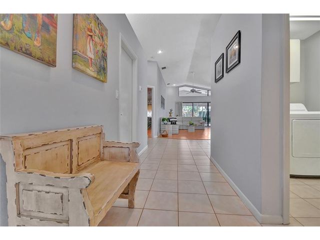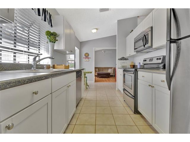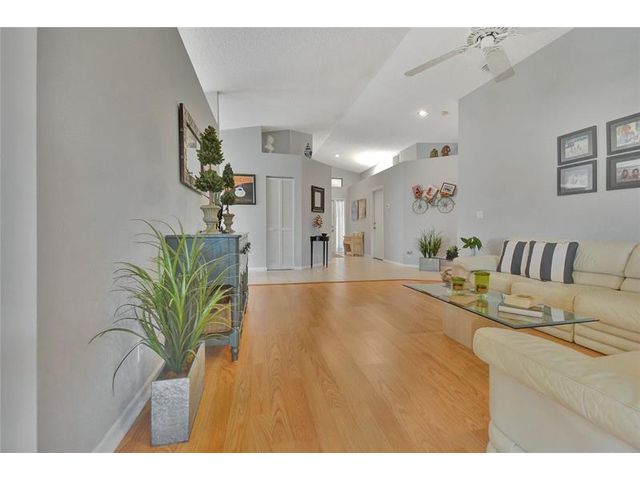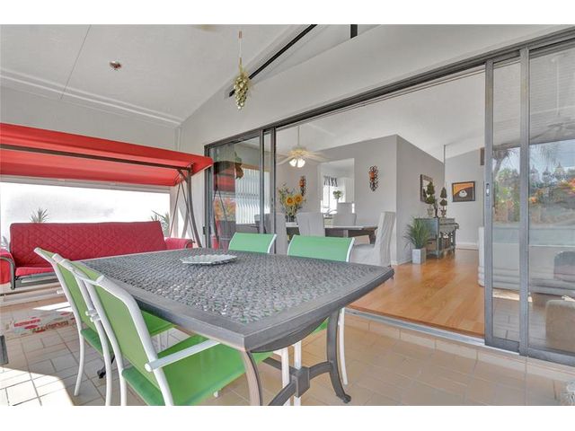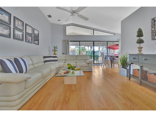 55+ Community. Discover this beautifully maintained 3-bedroom, 2-bath Lakeridge home offering comfort, light, and effortless Florida living. Vaulted ceilings, open layout with natural light, and warm laminate floors throughout. The kitchen features black lacquer countertops, double stainless sink, Frigidaire appliances, and generous cabinetry for everyday ease. The spacious primary suite includes private patio access, dual vanities, and a walk-in closet. Enjoy a screened, covered patio with peaceful garden views. Additional highlights include a 1-car garage, 2022 A/C, 2018 roof, and low $295 HOA covering cable, lawn, and exterior care. Minutes to beaches, shopping, and dining. A serene, well-kept home designed for connection, convenience, and a relaxed lifestyle.