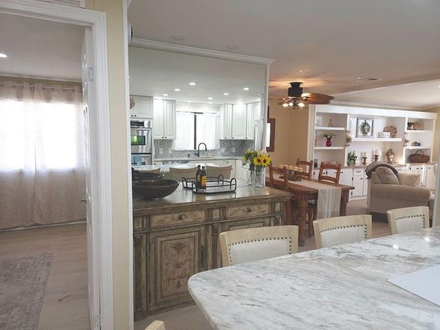 BUYERS AGENTS WELCOME! BUYERS AGENTS WELCOME! BUYERS AGENTS WELCOME! Calling all boaters and coastal lifestyle lovers! This beautifully updated and spacious 2-bedroom, 2-bath home is located in the highly sought-after Hidden Harbour Estates, a premier 55+ community where you own the land—no land lease! Step inside and enjoy a thoughtfully updated interior featuring a brand-new kitchen with soft-close cabinetry, granite countertops & backsplash and a large center island, perfect for entertaining or everyday living. New coastal-style luxury vinyl plank flooring flows throughout the home, creating a bright, airy feel. A stylish wet bar with vessel sink adds an extra touch of fun and functionality.