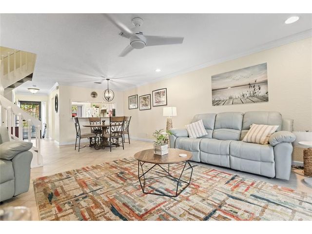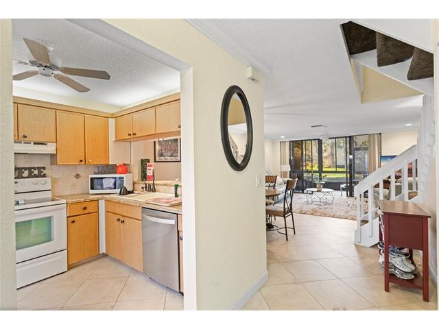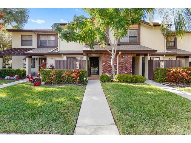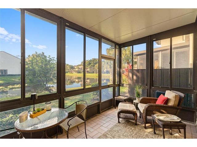 Spacious 2-bedroom, 2.5-bath townhome. Each bedroom features its own private bathroom. Half bath located downstairs. Enjoy serene views from the screened patio, perfect for morning coffee or tea. Tile and laminate flooring throughout, with carpet on stairs only. Half bathroom and primary bathroom have been renovated. New roof 2025, water heater 2025. Community amenities include an Olympic-sized pool, gym, tennis courts, basketball court, kids play area, theater, and more. HOA includes basic cable and water. No pending special assessment. All ages are welcome.