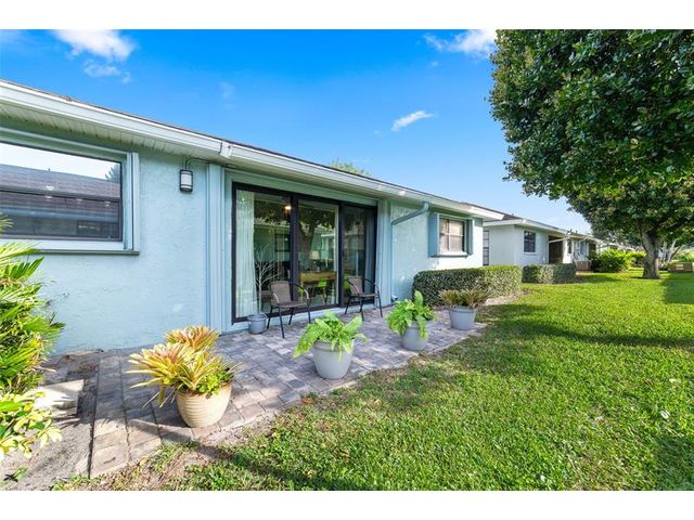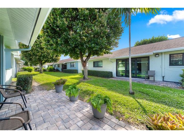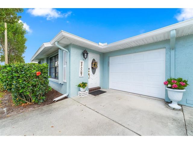 Nestled in a vibrant 55+ community, this charming and beautifully maintained villa-style home offers 2 bedrooms and 2 full bathrooms. Enjoy the elegance of hardwood and tile flooring throughout, complemented by a bright, modern kitchen featuring a center island and an oversized refrigerator. Impact resistant sliders and accordion shutters provide peace of mind. You'll enjoy the short stroll to the clubhouse, where you can indulge in social events, card games, movie nights, casino trips, a women’s club, a billiards league, and a sparkling pool. Conveniently located near shopping, dining, entertainment, and pristine beaches. One-car garage with driveway space for an additional car. No rentals for two years; no pets allowed.