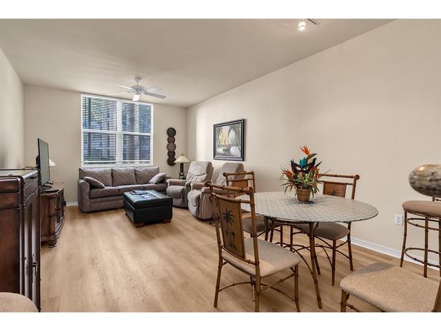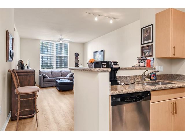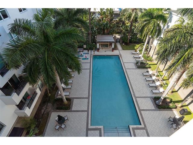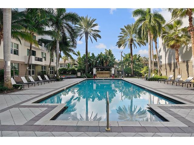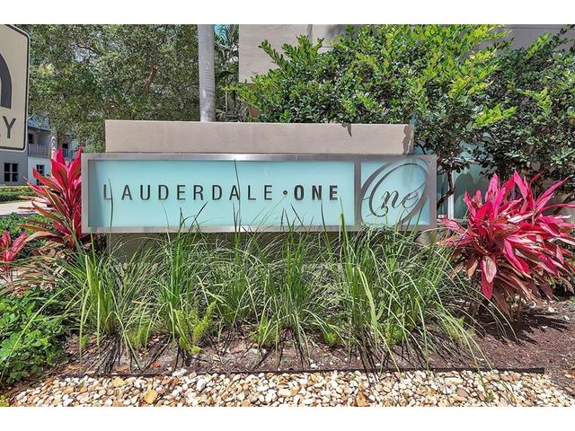 Large first floor 1/1 in desirable Lauderdale One. Small boutique building with only 174 units. This unit's location is ideal! Corner unit no one on either side of you. Right next to the parking garage door for convenience with groceries. NO need to have to go in an elevator. All the amenities are right outside your unit on the same floor. Unit has extra high ceilings, new laminate flooring, washer and dryer, stainless appliances, granite counter tops, impact windows & 1 covered assigned parking spot. This hidden gem has: manager on site, concierge, pool, spa, dry sauna, fitness center, business center, club room, guest suite & charging stations. Plenty of guest parking for your second car or motorcycle. Internet & pest control included. Pet friendly. Can rent first year. Twice a year.