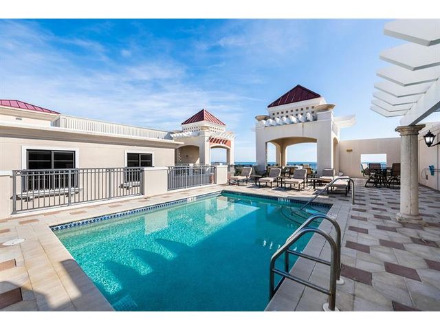 A genuine three-bedroom, 3.5-bathroom penthouse-level unit and one of the guest bedrooms provides an extra space suitable for a home office, ensuring versatility to meet various needs. Residents will enjoy impressive views of the ocean and the Intracoastal Waterway, along with convenient access to the beach. Recently refreshed, the sizeable open kitchen is a chef’s dream, equipped with plentiful cabinets and a convenient pantry. Spacious bedrooms come with generous closets. The lovely east-facing balcony is ideal for outdoor dining. With two covered garage spaces steps from your elevator, you’ll enjoy easy access without the hassle of a lobby & only shared with three units. Amenities include a rooftop pool and a fitness center, making this unit an unbeatable choice for your next home.