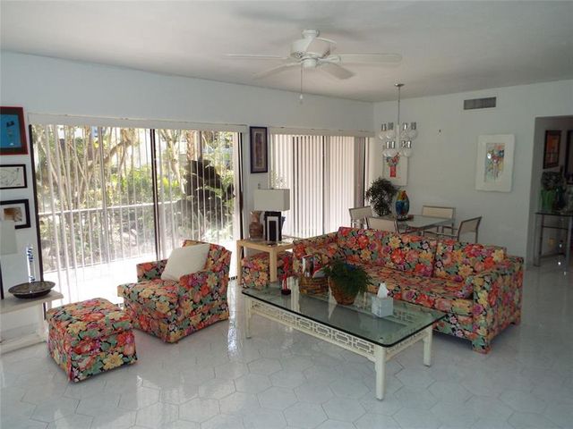 Light Bright & open, with lots of glass. Spacious 3 bedroom, 2 bath apartment, with underground parking. Tile floors, big open kitchen with some updating, large primary bedroom, updated shower, double sinks, big walk-in closet. This apartment offers textured walls and smooth ceilings (no popcorn). It has a large screened patio which is tiled. New Ruud AC in 2019, newer water heater. Furnishing are included except for art work and personal items.
