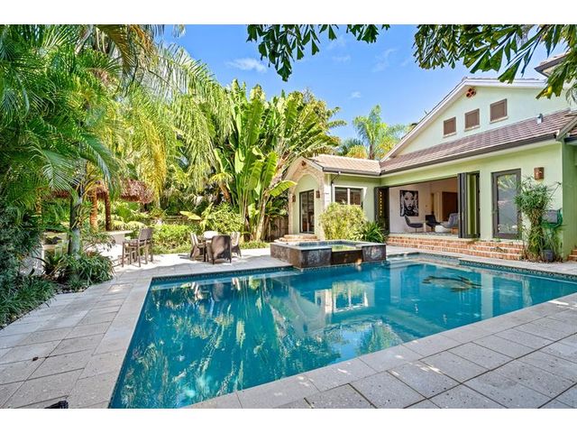 Behind a private gated entry, this stunning 2019 custom-built residence delivers a rare blend of modern design and tropical privacy in Victoria Park. Vaulted ceilings and open architecture fill the home with light. A new recent upgrade with new floors throughout, built-ins, and an outdoor patio enclosed and brought into the interior space. Lush landscaping surrounds a resort-style pool and spa. The main house offers three ensuite bedrooms, including a serene primary suite overlooking the backyard. A fully equipped guest residence with a separate entrance ideal for in-laws, older children, or extended stays. Outdoor, a new Paradise Grill summer kitchen, wine and beverage refrigerators, pool heater, and integrated speakers. Designed to entertain, built to impress, and ready to be shown.