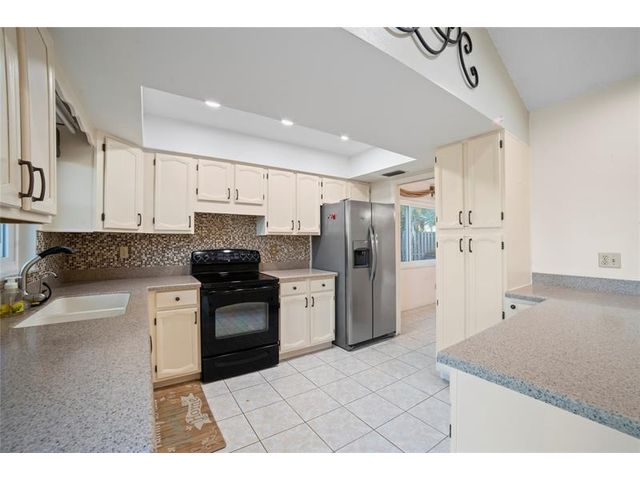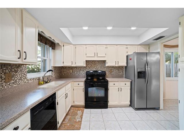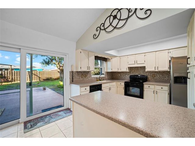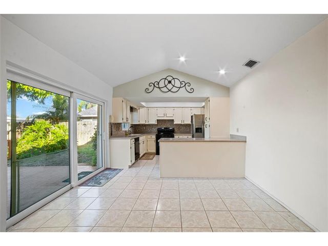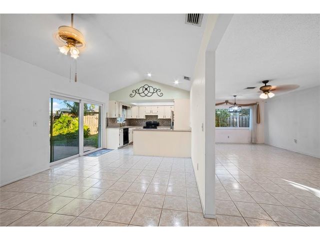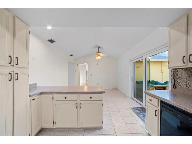 Charming 4/2 Del Prado home, 2-car garage w/ utility sink, dryer & brand new washer. Off foyer, enter spacious tiled liv/din area. Main hallway leads to all 4 bedrooms. Fourth bedroom may be used as an office, offering the privacy & functionality of stylish French doors. Cathedral ceiling family room leads to the open kitchen, featuring double-door, pull out pantry, Quartz counter-tops & pocket lights. With the security of a hurricane-rated garage door, 2020 sliding glass door, double-paned windows throughout & accordion shutters on all windows, this cozy home also boasts a 2024 HVAC system & six ceiling fans. Spend evenings on the shaded patio overlook the spacious, fenced-in back yard, featuring two established mango trees & 6-zone sprinkler system, with plenty of room for a pool!