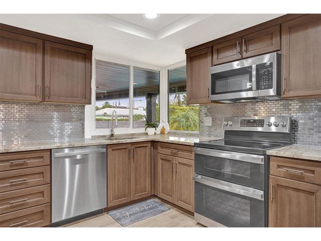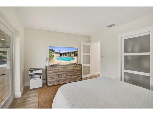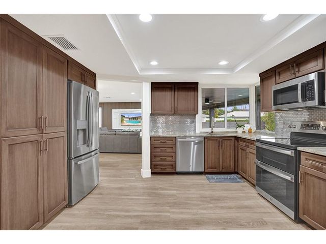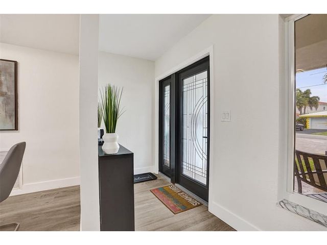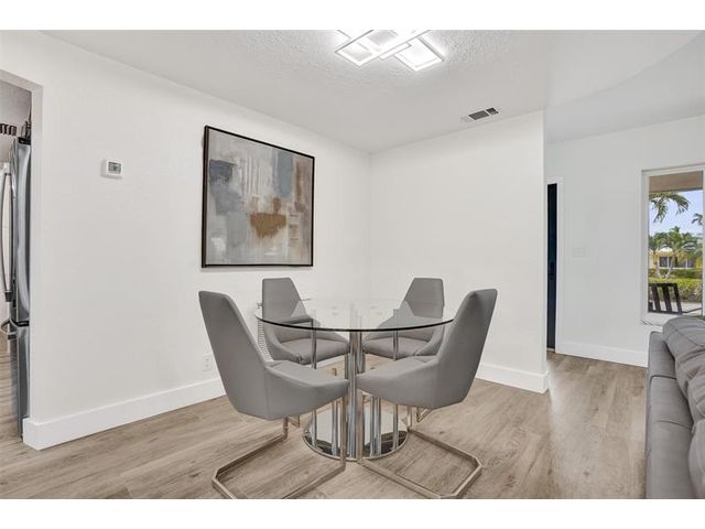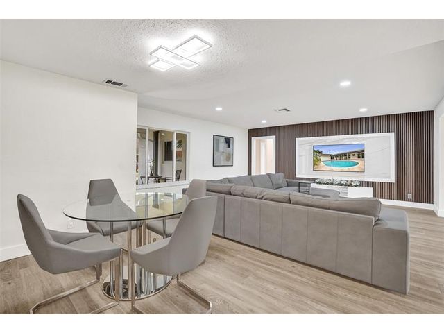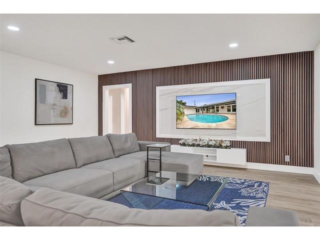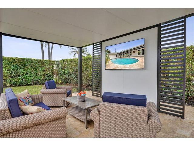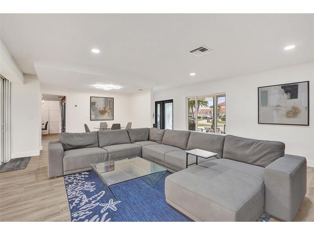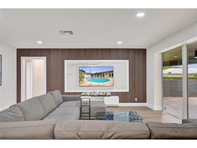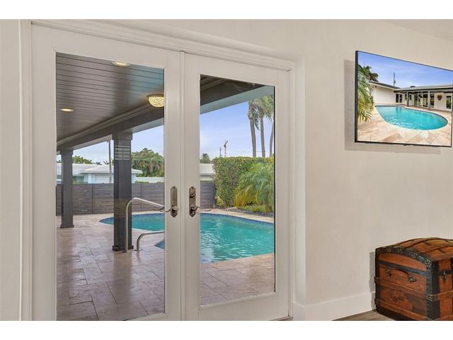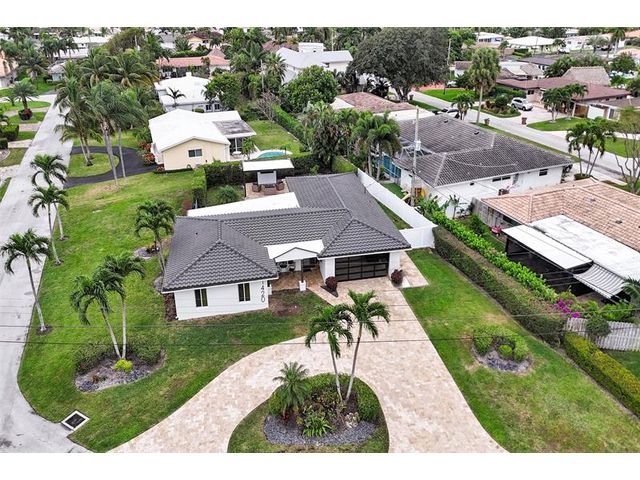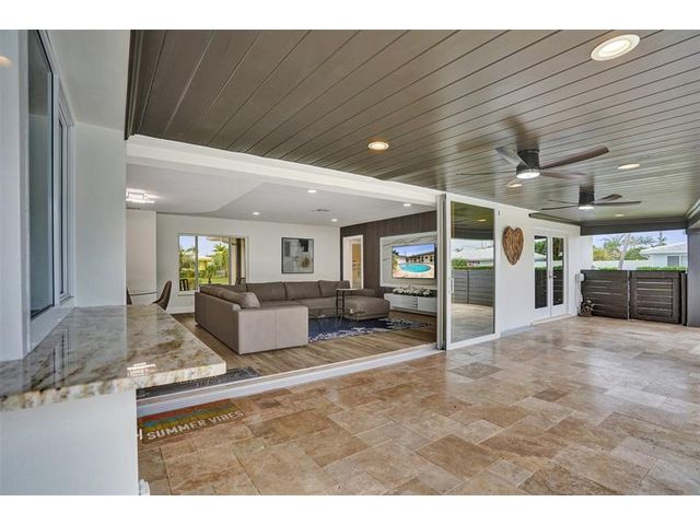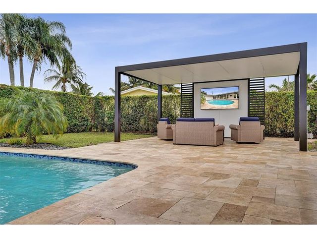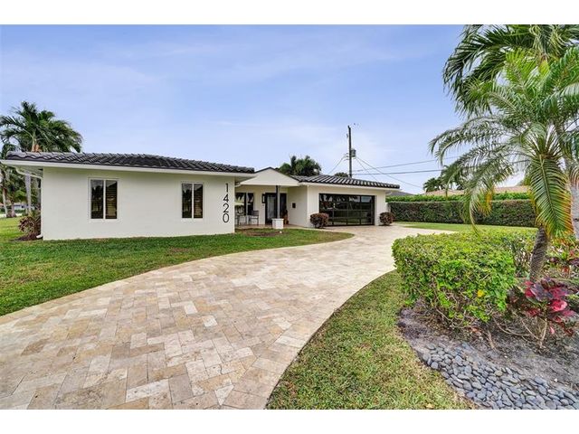 Completely updated 4-bedroom, 2-bathroom home located in an elite Deerfield Beach intracoastal neighborhood. Situated on a large corner lot, this residence features new ceramic tile plank flooring throughout, a fully renovated kitchen and bathrooms, and all new interior doors. Major system upgrades include newly relined plumbing with warranty, new insulated ductwork, updated LED lighting, switches, and outlets. Exterior highlights include a new designer glass garage door, sealed paver driveway, and beautifully maintained pool and patio deck with serviced pool equipment and heater. Enjoy outdoor living with a spacious covered patio featuring fans and lighting, plus a new oversized pergola with LED mood lighting and outdoor TV. Automatic sprinkler system included. A move-in-ready home!