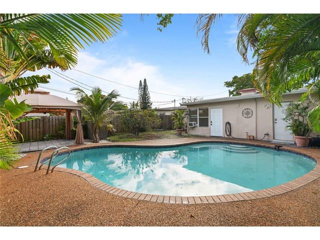 Tropical pool home, minutes from the beach, and surrounded by exciting new developments. Definitely worth the look. 3 beds / 2 baths featuring modern updates, including updated kitchen with granite countertops and stainless steel appliances, a smart thermostat for lower AC bills, hurricane glass in most windows (shutters for the others). Enjoy the private backyard framed with tropical landscaping, maximized with a patio and gazebo, ideal for relaxation or entertaining. An incredible location with quick access to I-95 makes getting around very easy. Just 10-15 minutes can get you to the Lauderdale by the Sea beach, Wilton Manors, FLL Airport, downtown FTL, Pompano, and much more.