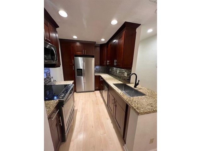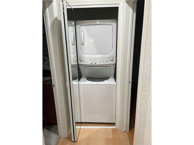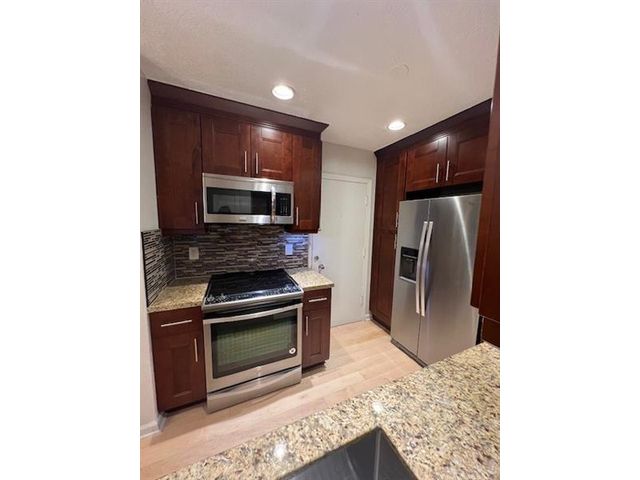 Beautiful ground floor recently remolded unit. Kitchen boasts Granite and Stainless. New hardwood floors throughout. Large wardrobe in master bedroom for extra storage. Plantation Shutters, Accordion hurricane shutters. Unit contains Washer and Dryer. Basic cable included in HOA fee. Close to everything but very quiet community. Heated pool, Fitness center, BBQ area and much more. 700 min credit score and 10% down. No rentals for the first 2 years.,