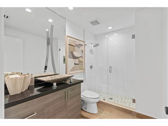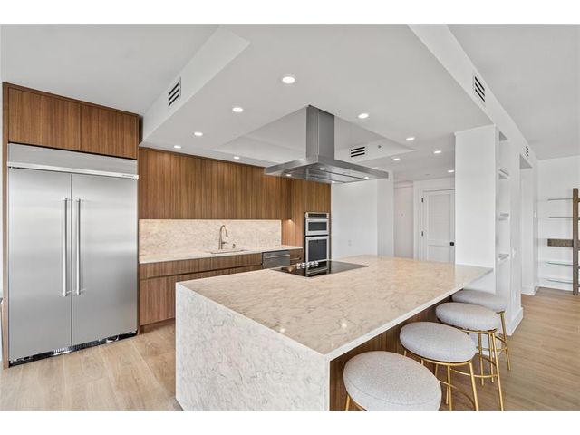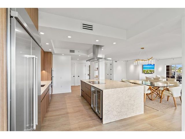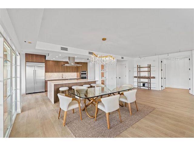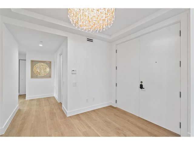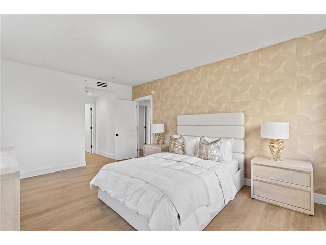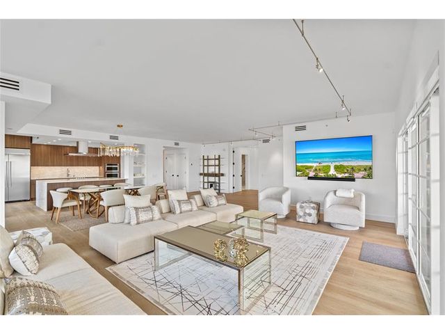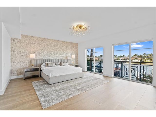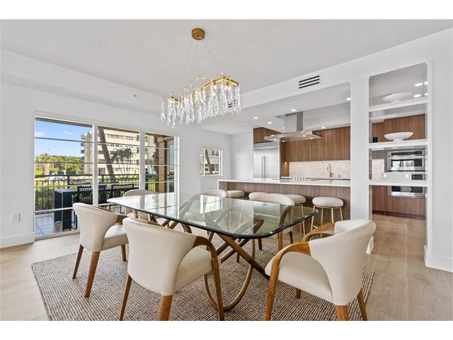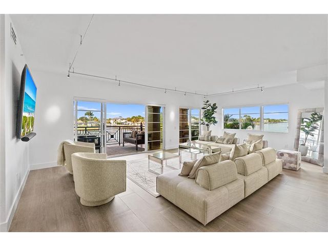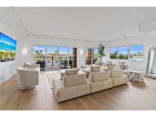 Experience elevated waterfront living in this Intracoastal-front residence within the boutique Mediterranea community. A new standard of waterfront architecture, this move-in-ready home features a private elevator entrance and modern interior designed for both style & comfort. Porcelain floors extend throughout the entire home. Impact windows & doors, built-in walk-in closets, and refined finishes are found throughout. The primary suite enjoys direct water views, complemented by two generous balconies ideal for sunset enjoyment. Additional highlights include two assigned garage parking spaces, a private storage room, pet-friendly living, and private deeded beach access—offering a rare blend of Intracoastal & beachside lifestyle.