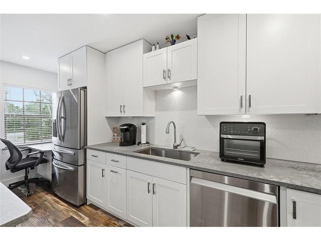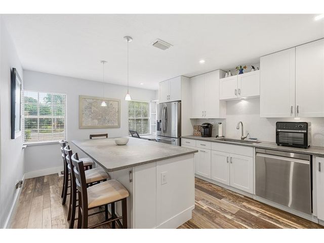 Stunning Spanish-style townhome in the heart of Fort Lauderdale! This fully renovated 3 bed, 2.5 bath residence features a modern kitchen with quartz countertops, island, and stainless appliances. Enjoy engineered wood floors, impact windows, tankless water heater (2021), and a newer A/C (2018). Whirlpool tub in guest bath, laundry room, and 2 assigned parking spaces add comfort. Relax on your private patio overlooking a serene, spring-fed lake with fountain. Community perks include a heated pool, clubhouse, and HOA covering cable + internet. New roof (2024)! Just minutes from the fun of Wilton Drive, Downtown, and I-95. Resort-style pool, clubhouse, modern comforts all wrapped in warm, Spanish vibes.