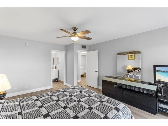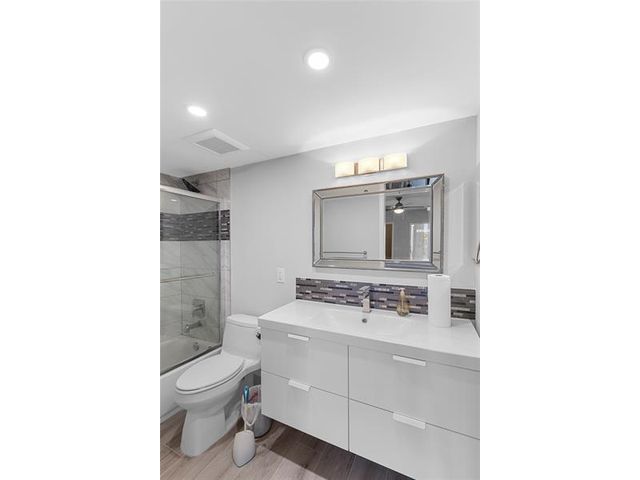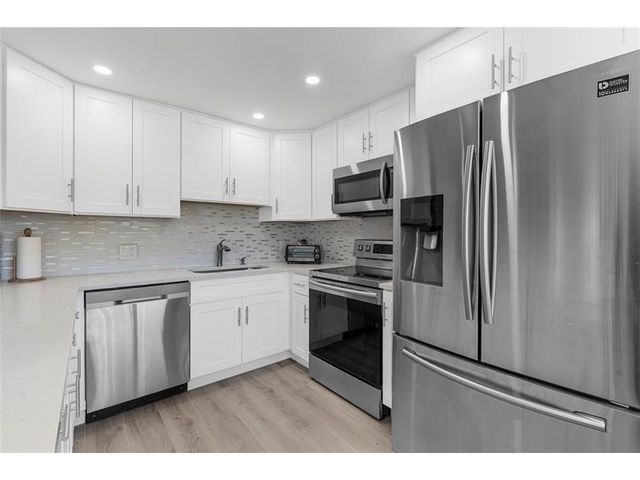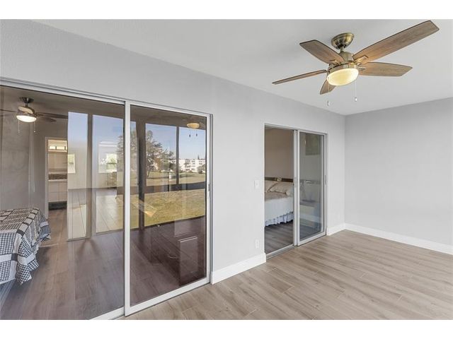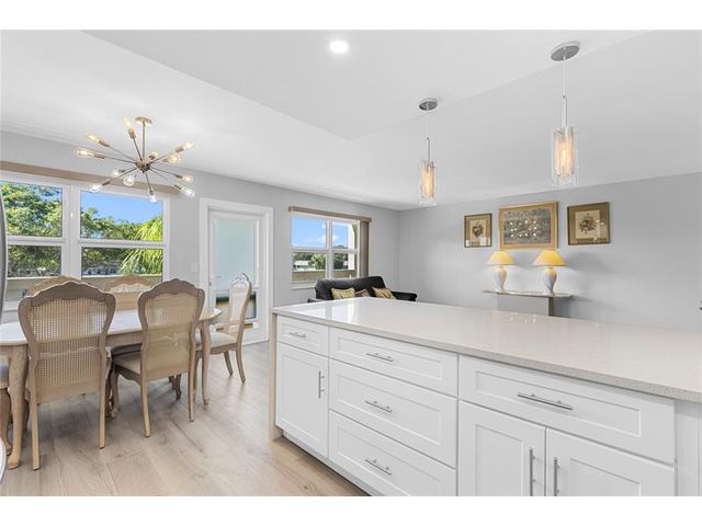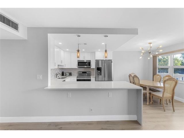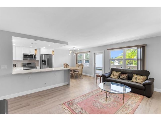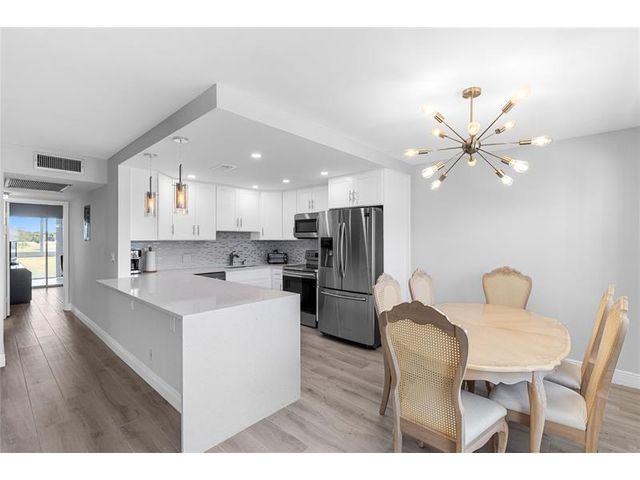 COMPLETELY REMODELED 2 bedrm, 2 bath condo featuring a modern open-concept kit w/ss appl, quartz cntrs, designer tile backsplash, recessed ltg & crisp white shaker cabs. Elegant Italian porcelain tile flows thru-out, complemented by smooth ceilings & abundant natural lt. Upgrades incl HURRICANE IMPACT WINDOWS & DOORS, a new electrical panel, A/C & water heater for peace of mind. Bathrms have been beautifully renovated—guest bath w/tub/shower & shower stall in primary. The encl patio offers a lovely, serene garden view. Enjoy a comm BBQ/picnic area rt in front! Resort style gated comm w/24hr sec, free busses, pools, tennis, pickleball & an on-site café. State of the Art Clubhouse w/a gym, billiards, clubs & classes, movies, shows & more! Close to beach, dining & shopping! ASSOC. CLAIMS 55+