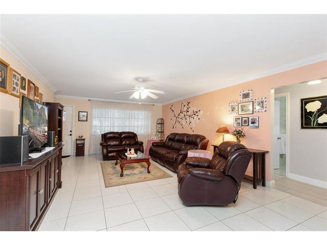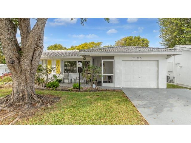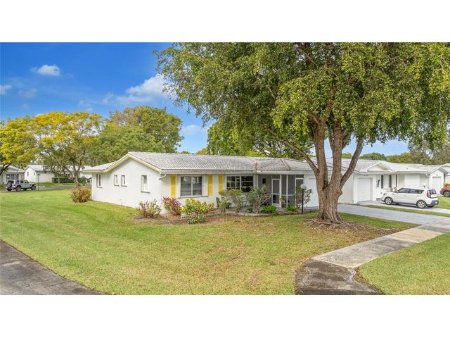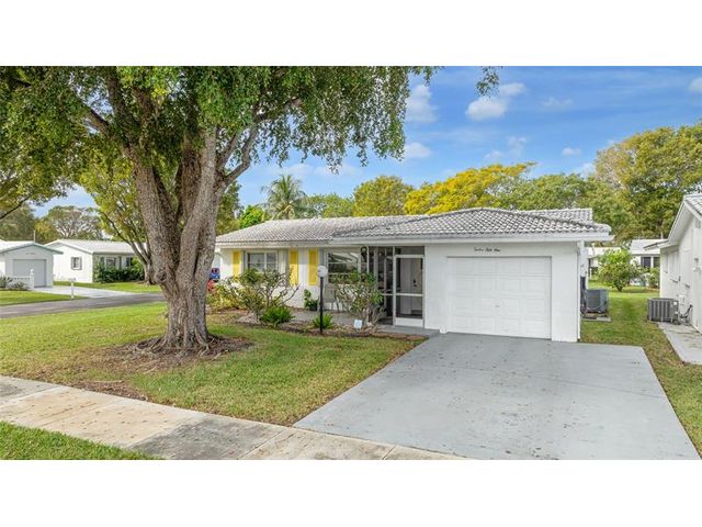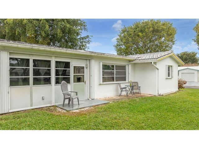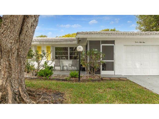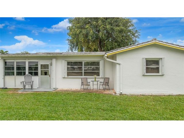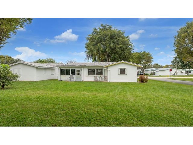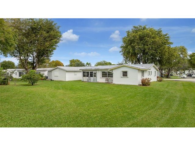 Welcome to Lauderdale West! This move in ready home sits on a private corner lot w/ no direct rear or side neighbor offering added privacy & space. The home features 2 bedrooms plus an air-conditioned Florida room, ideal as a third bedroom or home office. Highlights include a spacious family room, formal dining, a large eat-in kitchen w/ wood cabinetry, granite countertops, stainless steel appliances (newer refrigerator), crown molding, wood-look porcelain tile flooring, brand-new washing machine, smooth ceilings (no popcorn) & accordion hurricane shutters. The reasonable association fee covers lawn care, exterior pest control, house painting, basic cable / internet, roof repair / replacement and access to community amenities including clubhouse, gym, tennis, pool, shows & activities.