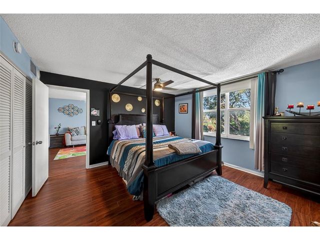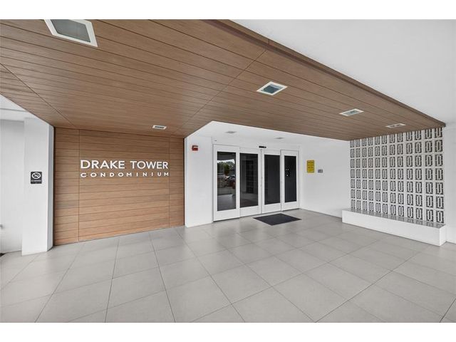 Beautiful 2-bed, 2-bath corner unit at Drake Tower Condos. Gated community with lush landscaping, strong on-site management, recent upgrades including a new pool & sun deck. Monthly fees include water, cable, internet, pest control. Secured entry with fob access & video phone app call box, resident meeting room, and gated parking area. A laundry room on each floor with two washers, two dryers, and private storage for each unit. This condo features wood floors throughout, tiled baths, stainless steel appliances, and a pass-through kitchen to the living/dining area. Impact windows and sliding doors lead to a balcony overlooking the pool and sundeck. Both bedrooms accommodate king-size beds; primary suite includes en-suite bath w/ tub, second bath offers walk-in shower. Walk to the Drive.