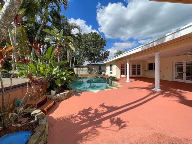 RANCH STYLE HOME --MAINTAINED WITH CARE AND LOVE IN A STABLE NEIGHBORHOOD WITH CIRCULAR DRIVE . THIS 4BR/3 FULL BATH HOME HAS 2500SQ FT OF LIVING SPACE WITH ATTACHED TWO CAR-HURRICANE IMPACT GARAGE WITH ENTRY DIRECTLY INTO YOUR HOME. HOME BOASTS A HUGE FORMAL DINING AND SEPARATE LIVING ROOM WHICH EXISTS THROUGH FRENCH DOORS TO BACK YARD--KITCHEN WITH NEWER APPLIANCES AND BREAKFAST AREA--FAMILY ROOM WHICH WOULD BE PERFECT FOR A POOL TABLE WITH VIEWS OF POOL/YARD AREA. LAUNDRY ROOM WITH BUILT IN CABINETS. HOME PERFECT FOR LARGE FAMILY GATHERINGS WITH IT'S OPEN FLOOR PLAN. ALSO INCLUDED IS A FREE STANDING SPA--LOT SIZE IS 12000 SQ FT. NEWER HVAC SYSTEM -- IMPACT WINDOWS RECENTLY INSTALLED. A+ SCHOOLS- NEWER TILED ROOF AND LUSH LANDSCAPING SURROUNDS HOME. OWNERS HAVE ALREADY RELOCATED!