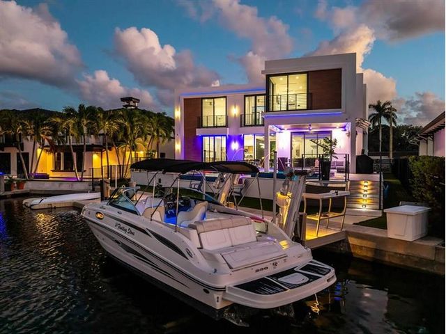 FULL LUXURY OCEAN ACCESS ESTATE – NEW 2025! Brand-new 5,709 sq ft modern waterfront masterpiece in Lighthouse Point with 200 ft of private ocean-access views. Includes 26’ Sea Ray Boat on 10K Neptune Lift, double jet ski lift, floating dock, 6-passenger Icon Golf Cart & $100K designer furnishings (Primary BR excluded). 5BR, 6BA + flex room, 25-ft ceilings, Italian gloss kitchen w/72” Sub-Zero, 48” dual-gas range & Positano Quartz. Infinity pool/spa, marble patio, summer kitchen, Control4 smart home, Sonos, LED lighting, new seawall, composite dock & 26KW Generac. Turnkey luxury.