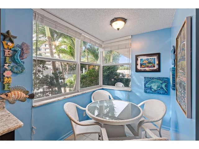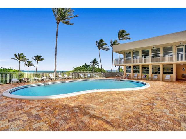 Welcome to this beautifully maintained first-floor 2-bedroom, 2-bathroom residence, offering the perfect blend of comfort and convenience with ground-level living—no stairs or elevators. The cozy yet spacious layout features hurricane-impact windows and doors, washer and dryer inside the unit, and an assigned covered parking space. Filled with natural light, the home offers a warm, inviting atmosphere ideal for full-time or seasonal living. The professionally managed building is right on the sand & offers a 24-hour doorman, fitness center, clubhouse, card room, sauna, and BBQ area overlooking a tropical oasis. The pool is steps from the beach. Excellent reserves, and walking distance to Lauderdale-by-the-Sea and Sea Ranch Lakes Shopping Center. Just 25 minutes to FLL Airport.