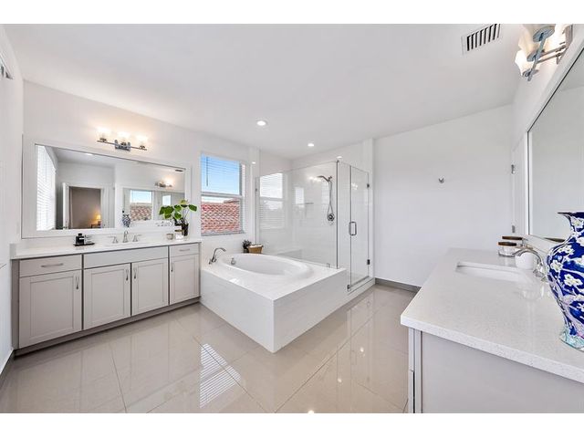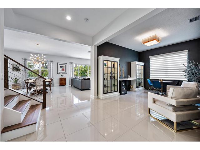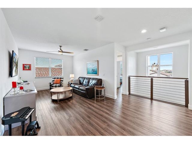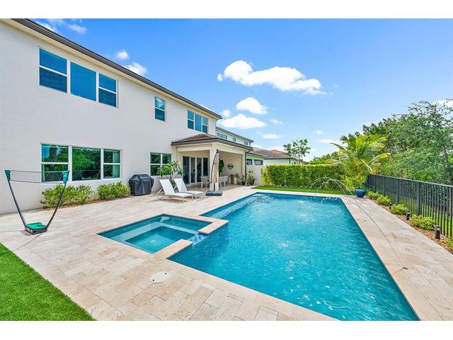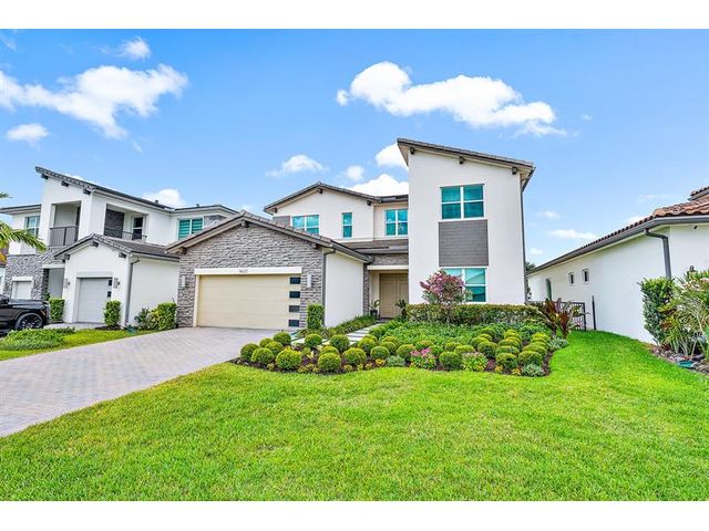 Beautifully upgraded modern pool home in desirable Andalucia. This home has it all. 4 BR, 4.5 baths, loft, laundry w/tub, 1st flr. ensuite guest BR, great room, formal dining and Porcelain Tile. Custom stair case leads to loft, MBR and 2 BRs -1 is an addl. ensuite. There is also a 4th BR, full bath and laundry. High energy efficiency with gas tankless water heater, sprayed-in insulation, hurricane impact windows/doors. 3 car garage has epoxy flr, overhead racks, EV Charger. HEATED SALT WATER POOL AND SPA w/large paver patio and artificial turf. Private yard, Green area view & Child Sec Fence. Lawn care and SECURITY GATE ACCESS is included in the low monthly HOA+ Community pool/gym. Outstanding schools, near turnpike & Wellington shopping. Easy to show. amazing value . Great location!