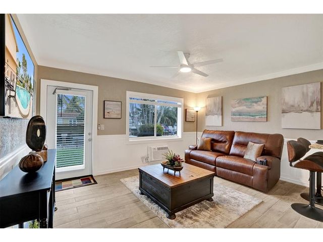 Completely renovated waterfront corner unit in the heart of Pompano Beach! This beautifully updated 1-bed, 1-bath residence offers both style & serenity. Enjoy a private entry & thoughtfully redesigned interior where no expense has been spared. Remodeled eat-in kitchen features shaker cabinetry, granite & new appliances, incl. gas range. The spa-inspired bathroom showcases updated vanity w/ quartz & sleek walk-in shower w/ seamless glass enclosure. Freshly painted & finished w/ new ceiling fans, updated lighting & wood-look tile flooring throughout. Step directly out your back door to relax by the tranquil waterfront—perfect for enjoying your morning coffee or evening unwind. Ideally located near shopping, dining, beaches, and all that Pompano Beach has to offer. A true must-see!