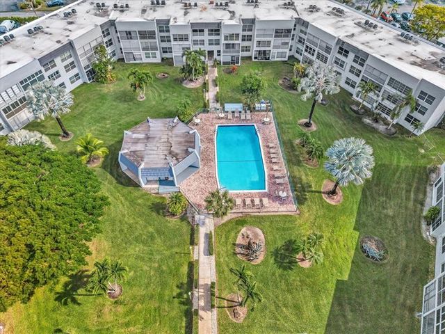 Nestled in the quiet, beautifully maintained community of Royal Park Gardens, this inviting 2nd-floor condo next to the elevator offers serene views of lush green space and a canal. Tasteful tile, complemented by updated counters in the kitchen and stainless steel appliances. Enjoy the comfort of a walk-in closet and a spacious enclosed balcony perfect for lazy Sundays. The home features newer A/C 2023, freshly painted interior, and furniture is included. Residents enjoy resort-style amenities including a heated pool, clubhouse and ballroom, fitness room, billiards, tennis, tiki hut, and BBQ picnic area. Convenient parking is right out front with ample guest spaces. Water and cable are included, making this a truly carefree place to call home.