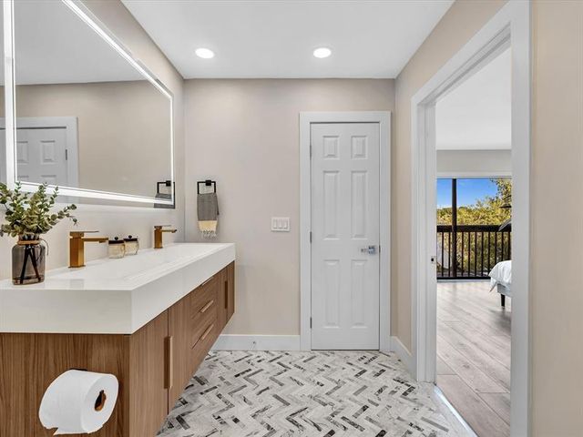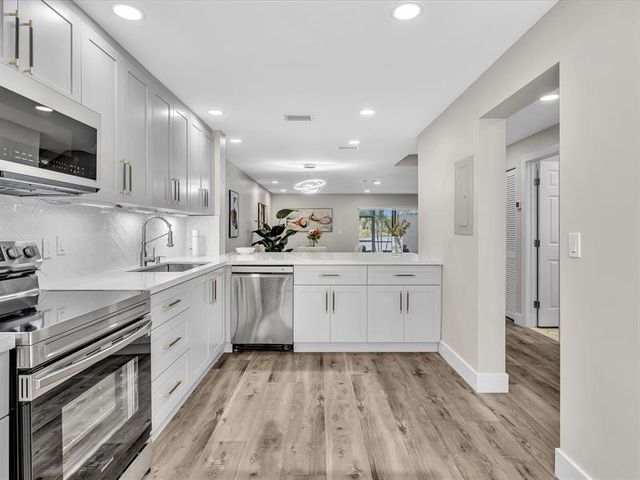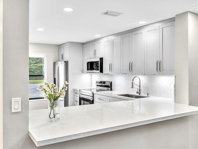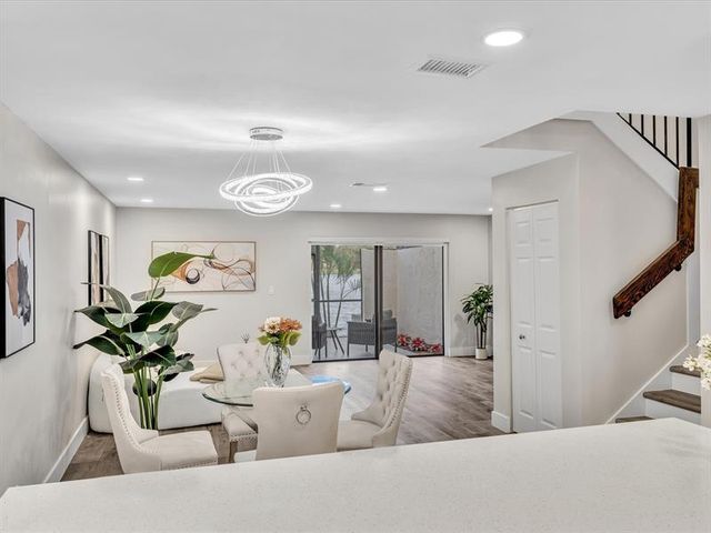 Welcome to Villa Agua, a stunning 3-bedroom, 2.5-bath corner unit townhome featuring impeccable manicured landscaping and breathtaking lake views from all over. Step inside to a beautifully decorated home with new kitchen cabinets, modern appliances, elegant flooring throughout, including the staircase and a beautiful screened, outdoor patio to enjoy the amazing lake views. This model-perfect home is move-in ready, waiting eagerly for its new owner and their toothbrush. Embrace the comfort, style, and tranquility of this exceptional residence — your dream home awaits!