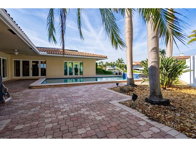 This gorgeous single-story home boasts exceptional curb appeal with a large circular drive, covered foyer entry, and lush landscaping. Ideally situated on a lovely street in what many consider the most desirable section of the City, this 3-bedroom, 3.5-bath residence features a split-bedroom floor plan and a spacious eat-in chef’s kitchen. Highlights include impact glass, a cabana bath, heated pool with built-in spa, two-car garage, and air-conditioned laundry room. Perfectly positioned on a bend in the canal, enjoy refreshing breezes and tranquil water views looking toward Lake Placid. From your dock, cruise east through Lake Placid past the marina and reach the ocean in under 10 minutes.