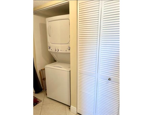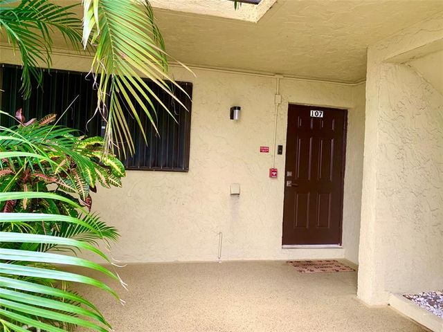 Beautifully remodeled first floor corner condo with large white tile throughout and plenty of natural light. Remodeled kitchen with great custom storage, granite countertops, s/s appliances and recessed lighting. Two large bedrooms, two full baths, the spacious primary suite offers a full bath with a walk-in shower, walk-in closet and an additional large closet. Hurricane impact windows and a hurricane impact steel rated panel front door. Full size stacked washer/dryer inside your condo and an enclosed patio with natural pebble-stone flooring. Heated swimming pool, bocce and a clubhouse in this cozy age restricted community. Great location, near all the restaurants, shops, parks and entertainment. Only 1.5 miles to the beach with oceanfront dining, schedule a tour today!