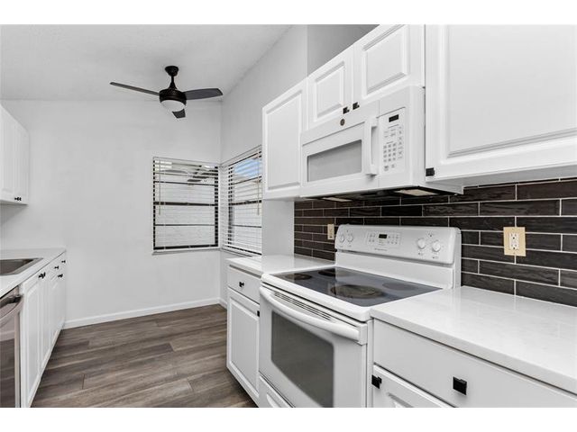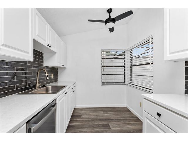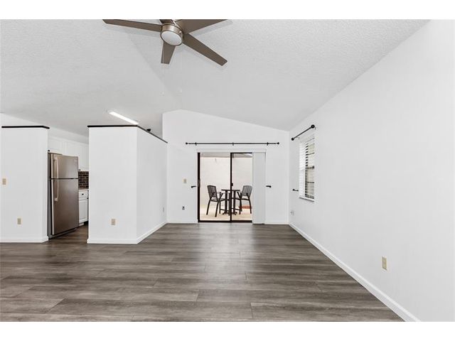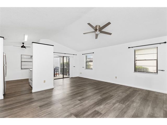 Don’t miss this beautifully renovated Boca Raton villa with designer finishes throughout. This light-filled home features laminate flooring, an updated kitchen with solid surface countertops, subway tile backsplash, and stainless-steel appliances. Vaulted ceilings enhance the open feel, while the new window treatments and private screened patio offers a perfect space to relax. The primary suite includes a spa-inspired bathroom with a freestanding double-sink vanity and a striking shower with sliding barn-style glass doors, large rectangular tile walls, and glass tile accents. The second bath features a freestanding vanity, full-length glass tile accent wall, sliding glass shower doors, and oversized tiled walls. Community amenities include a pool and clubhouse.