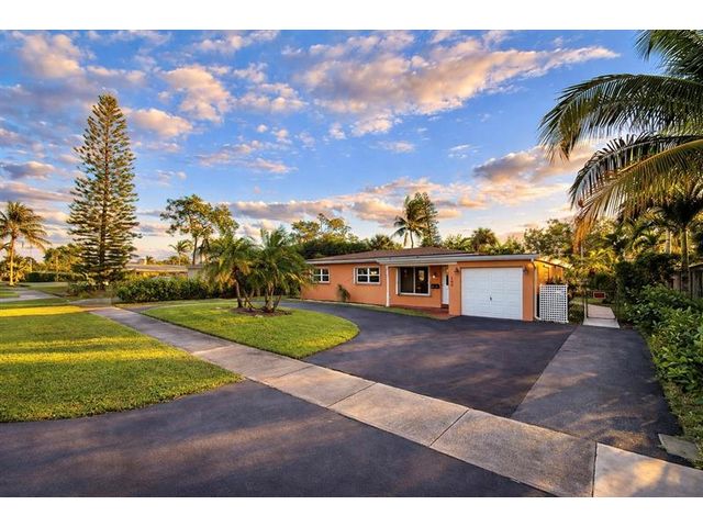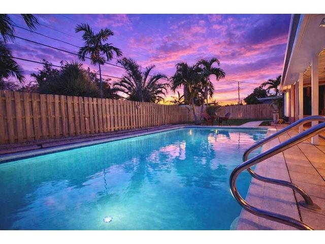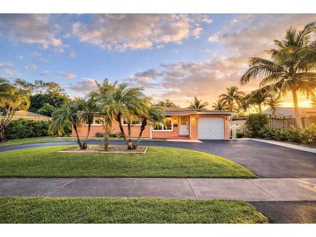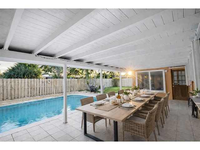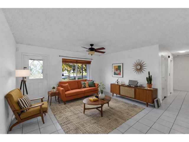 Wow!! Fabulous Pompano Beach Pool house ready to be your new home! 1500 square ft of space with a 1 car garage and a beautiful tropical landscaped private yard!! Full impact windows and new roof 2024. Photos are enhanced with virtual staging of furniture and flowers in the landscaping.