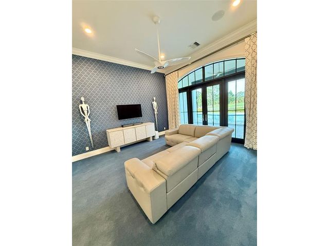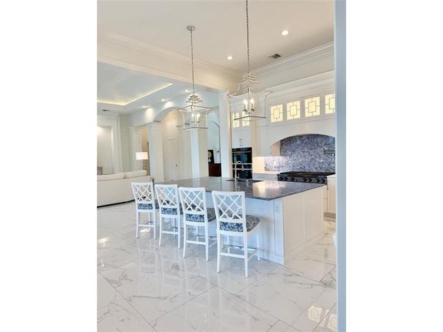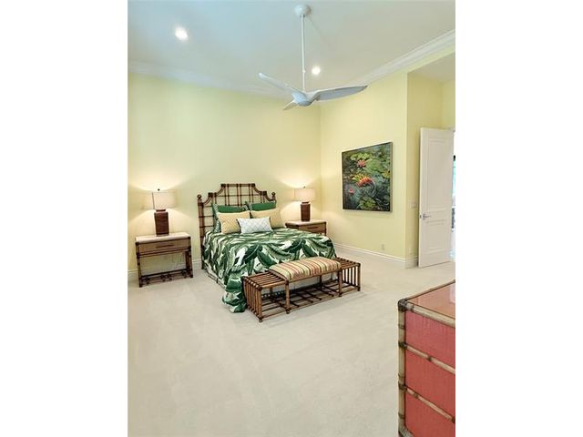 This elegant one-level residence offering 5,705 square feet under air captures serene views of the golf course and surrounding preserve, creating a truly peaceful setting. Thoughtfully designed for both comfort and entertaining, the home features four bedrooms, five full baths, a half bath, plus a convenient cabana bath, all seamlessly arranged on a single level. Refined custom woodworking and architectural details enhance the interior with timeless craftsmanship and warmth. Outdoor living is elevated by a free-form pool surrounded by lush landscaping, ideal for both relaxation and entertaining. A circular driveway adds impressive curb appeal and ease of arrival. Situated on .69 acres and offered partially furnished, this exceptional property offers privacy, elegance, and luxury.