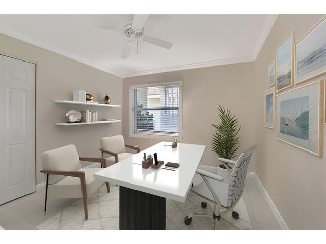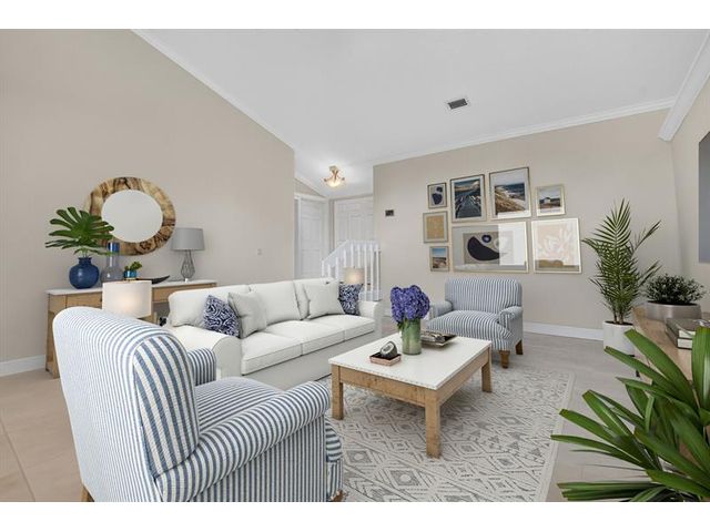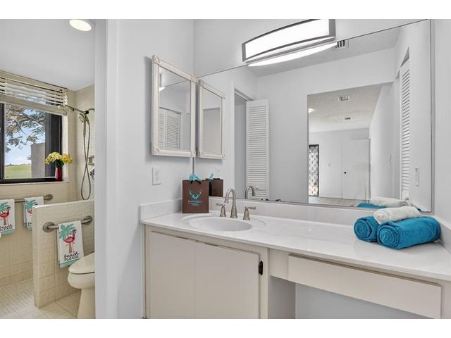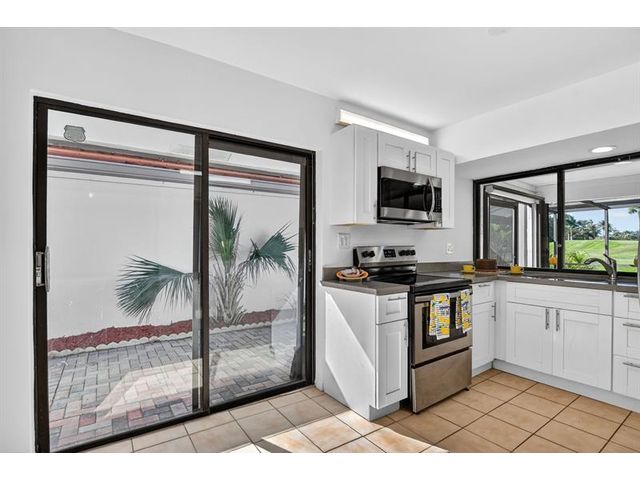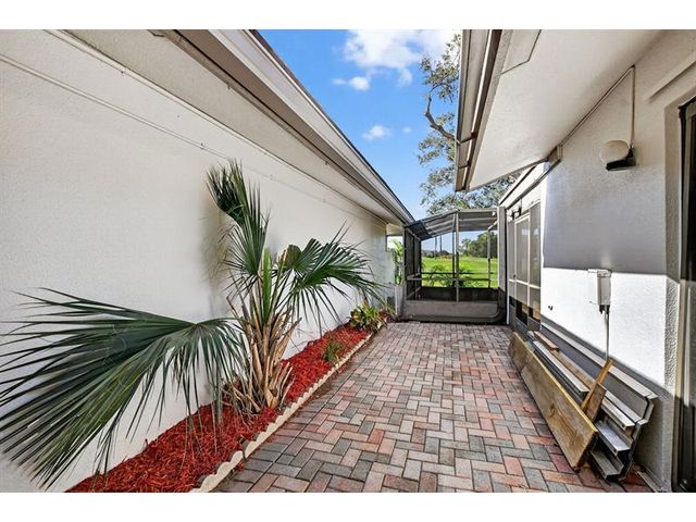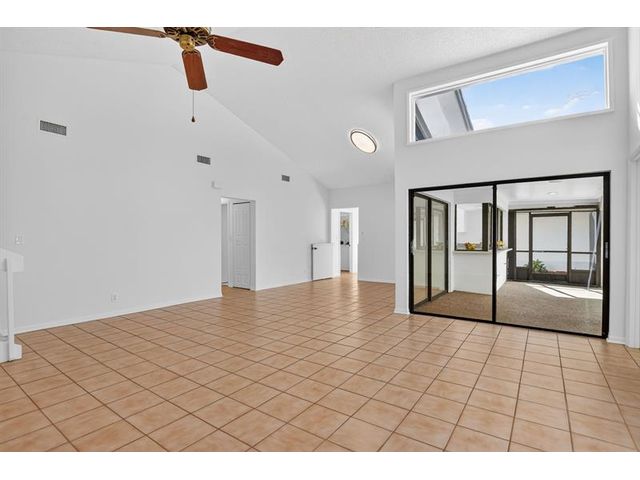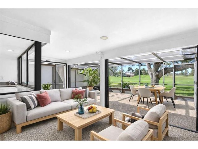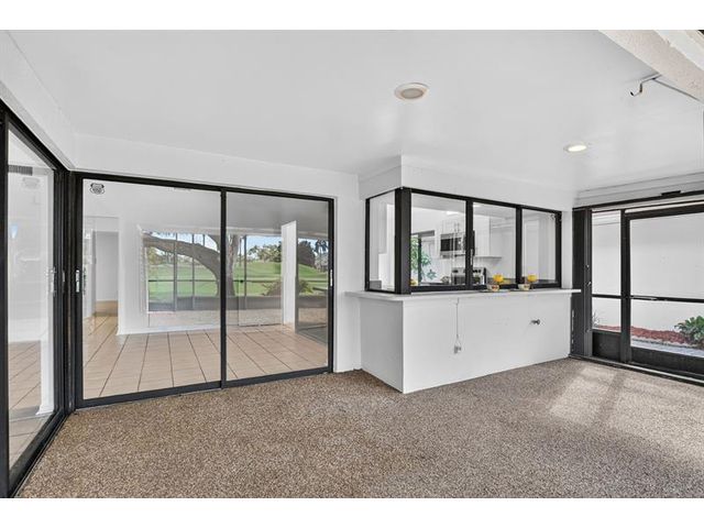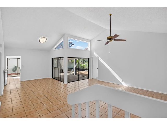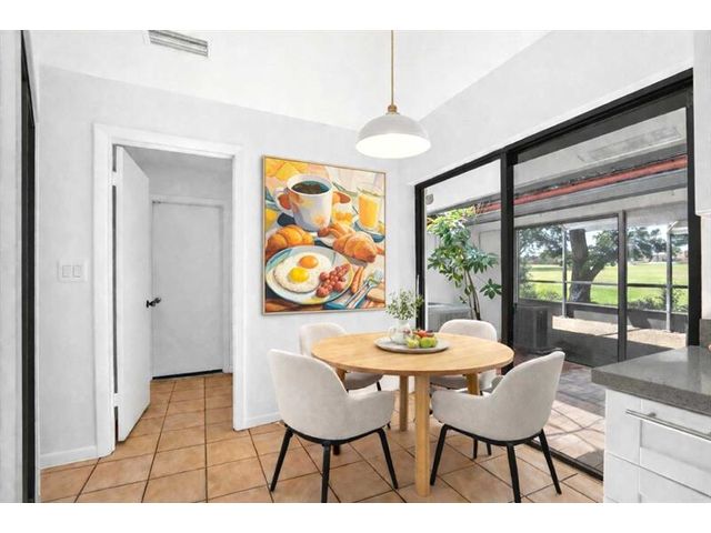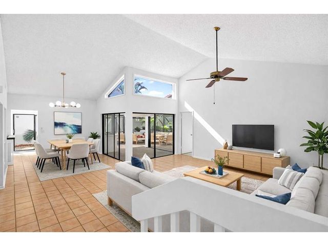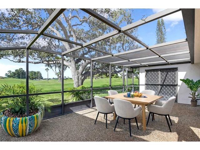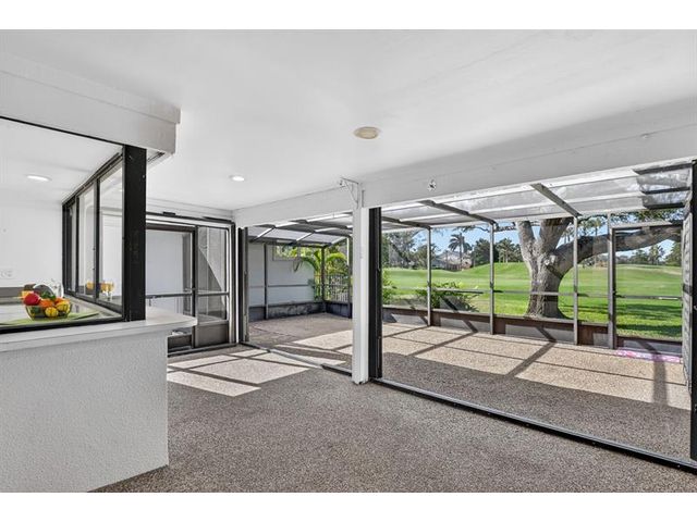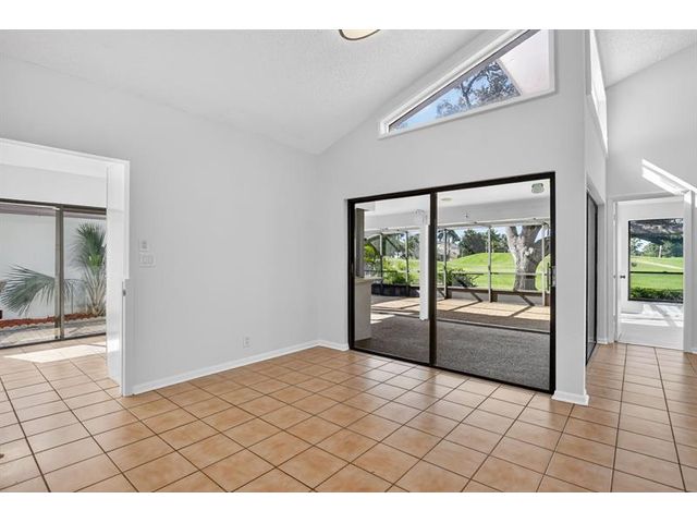 Deer Creek fairway home in sought-after THE HOLLOWS! This 3BR/2BA residence features a wide-open floor plan w/ soaring 14’ ceilings & abundant natural light. Oversized great room flows into formal DR and covered patio—perfect for entertaining. Chef’s kitchen offers newer S/S appliances, quartz counters, white shaker cabinets, large pantry, and pass-through to patio. Spacious corner primary suite boasts luxury vinyl plank flooring, a large walk-in closet, & bath w/ tiled shower & sweeping FAIRWAY VIEWS. Split-bedroom layout provides guest privacy. Enjoy endless sunsets from the screened and covered lanai overlooking the 4th fairway! Inside laundry, 2016 A/C, new electric panel, hurricane-rated garage door. No equity membership required. Low HOA includes lawn care. Minutes to sandy beaches.