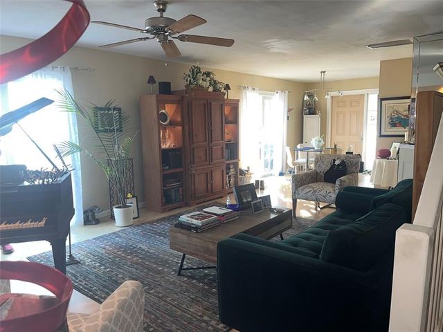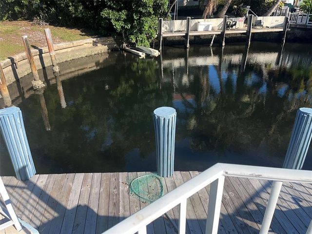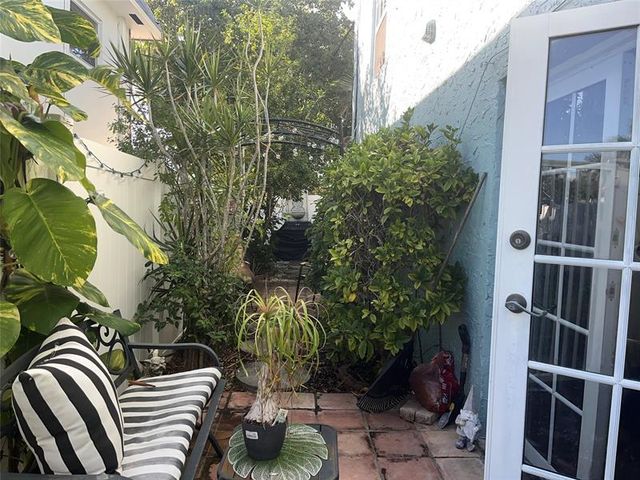 Great Pompano Beach Location - Minutes to A1A & Atlantic Ocean beaches. Two-story unit in well maintained 7-unit garden-style bldg situated on the intracoastal canal, offering direct water exposure & ocean access. Assn owns deeded dock space. Daily/short term rental allowed. Great for investors or primary residence. End Unit with 2 sets of French doors that allow lots of natural light & lead into a seculeded garden. Unit is in good condition but has the potential for new owner to remodel to their style and taste. A/C unit less than 8 years new, water heater 2025. Laminate floors 1st floor and carpet on 2nd floor. All impact windows 2nd floor & shutter panels for 1st floor protection. Building has newer roof less than 10 years new. A MUST SEE!