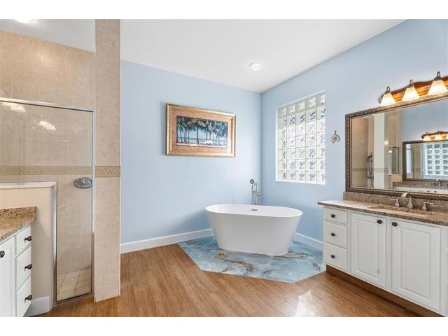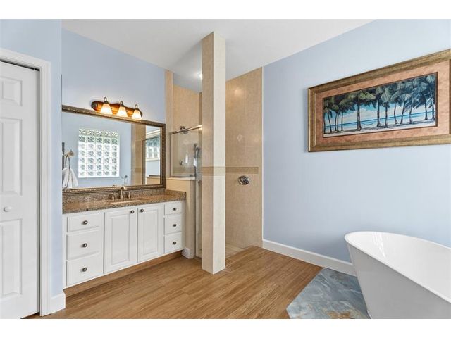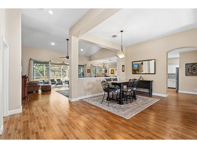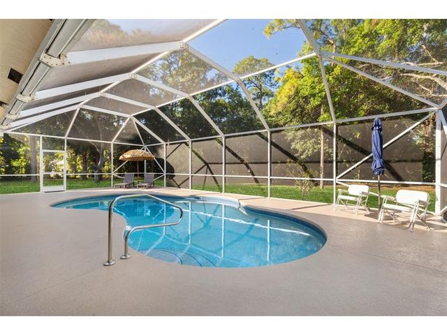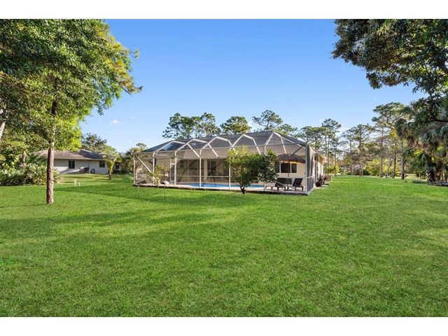Rare and impeccably maintained CBS residence set on over an acre in the highly desirable Trailwood community, offering privacy, space, and quality construction. This 3,205 sq ft residence features 4/3+den, with an open concept layout, soaring ceilings, and abundant natural light. Wood-look tile flooring runs throughout the main living areas. The kitchen and bathrooms are finished with granite countertops and classic detailing, while the spacious primary suite includes an updated, spa-inspired bathroom. A guest bedroom with en-suite bath provides privacy for visitors. Outdoor living with a screened saltwater pool and expansive patio. Major systems updated, includes new roof in 2025, offering peace of mind. Low HOA. Located near major highways, shopping, dining, and Jupiter’s beaches.