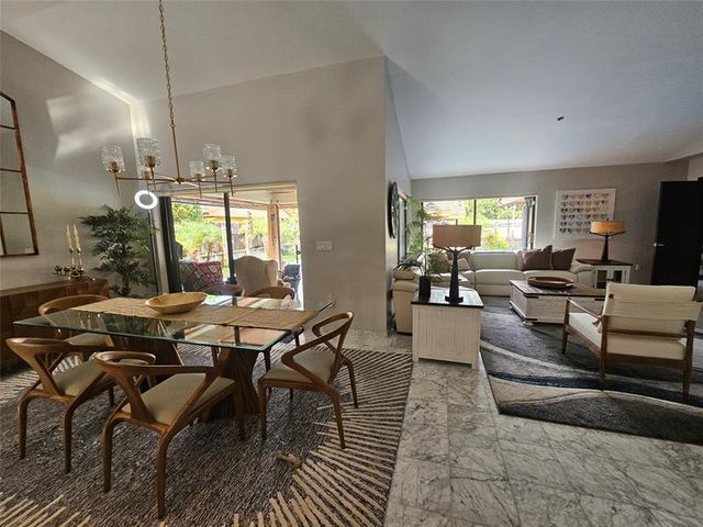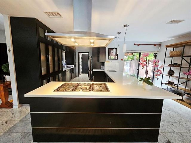 Welcome to this stunning updated pool home in a prime Miami location! This 3-bedroom, 2-bath residence features soaring ceilings, marble floors, and a bright open-concept layout ideal for modern living. The chef’s kitchen boasts a large waterfall island, gas cooktop, custom cabinetry, and designer lighting. The spacious primary suite opens to the backyard and offers a spa-style bath with dual vanities and walk-in shower. Enjoy true Florida living in your private oasis with a heated saltwater pool and hot tub, lush tropical landscaping, and covered patio. Major upgrades include a 2019 roof, 2020 A/C, and hurricane shutters. Quiet cul-de-sac, 2-car garage, move-in ready! Call listing agent for a tour.