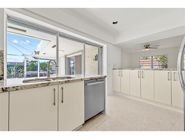 Bring your boat and vision! This waterfront gem in a quiet Fort Lauderdale neighborhood is priced below market value and loaded with rare features. Enjoy 75 feet of seawall, a 22 ft boat dock (lowest bridge clearance 7 ft, 5 bridges to the ocean), and a screened pool perfect for relaxing or entertaining. Home features include original polished terrazzo floors, new central A/C (2023), an upgraded kitchen, accordion hurricane shutters on all windows, and a newer roof for peace of mind. You’ll also find a natural gas Generac generator that starts automatically during power outages, an upgraded electrical system, a two-car garage, and a working sprinkler system. Quiet street yet close to beaches, dining, shopping, and major highways.