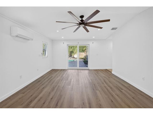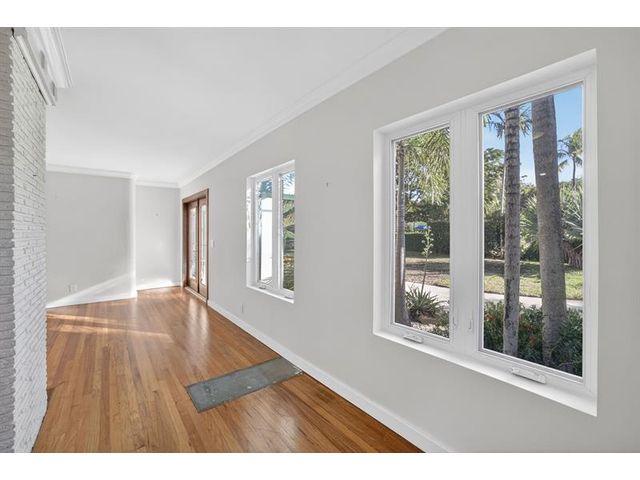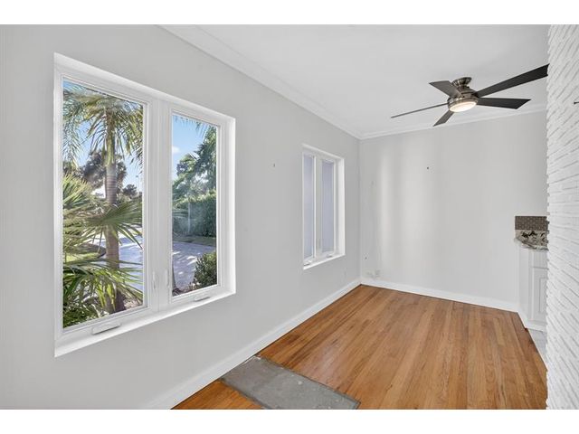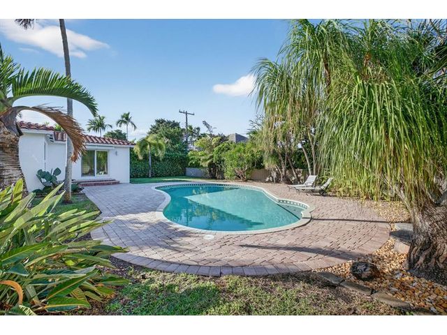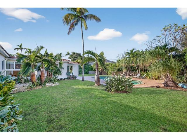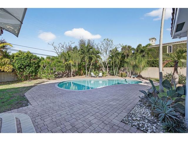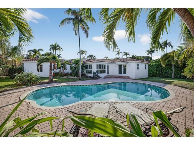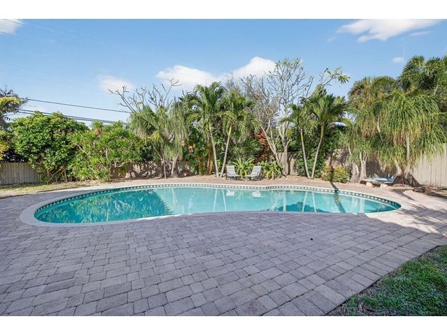 It is all about the LOCATION! Literally across the street from George English Park with different courts & amenities, public boat launch & watersports, Bayview Elementary School District (plus other nearby A-rated schools), Publix, restaurants & beaches. Delightful & welcoming home located on a property over 30% larger than competing homes, creating a larger fenced private backyard, lawn & pool area! Offering huge curb appeal due to front renovation, large circle driveway, renovated front elevation, great floorplan, wood floors, two living rooms & fireplace, expansive privately located primary suite, updated bath, dual vanities & large walk-in closet. Split bedroom plan with 3 secondary bedrooms. Abundant natural light throughout this great Coral Ridge home available for quick closing!