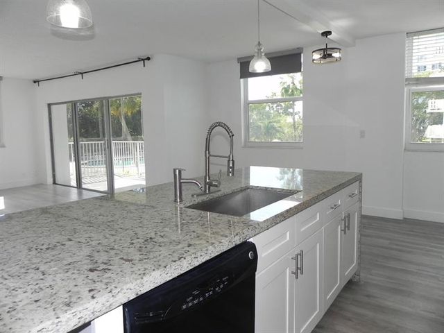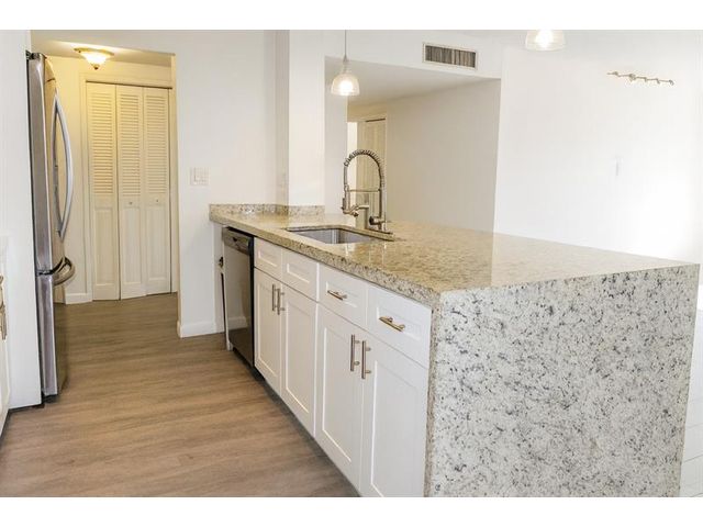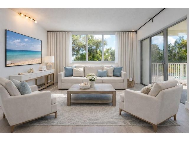 Deluxe corner unit—All ages welcome! Bright, beautifully updated condo with an open layout, wide-plank flooring, fresh paint and oversized impact windows for great natural light. The renovated kitchen features white cabinetry, granite countertops, stainless steel appliances and a breakfast bar. Enjoy resort-style living with a large pool and lush tropical grounds. Relax on your private balcony overlooking greenery and the sparkling pool. Enjoy walking trails. Conveniently located near shopping, dining, and everyday services, this property is ideal for those seeking low-maintenance living in a well-kept setting. An excellent opportunity for a primary residence or seasonal retreat. Conveniently assigned parking near the entrance.