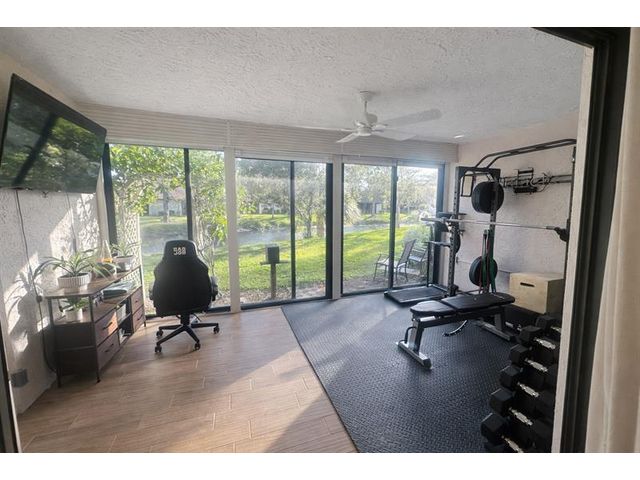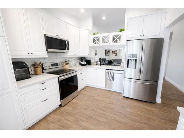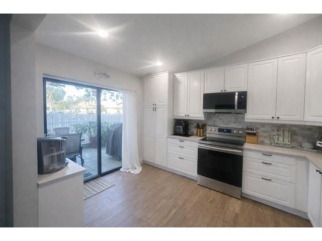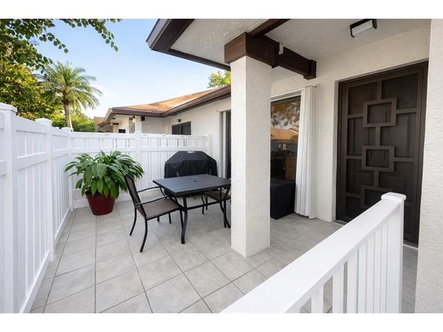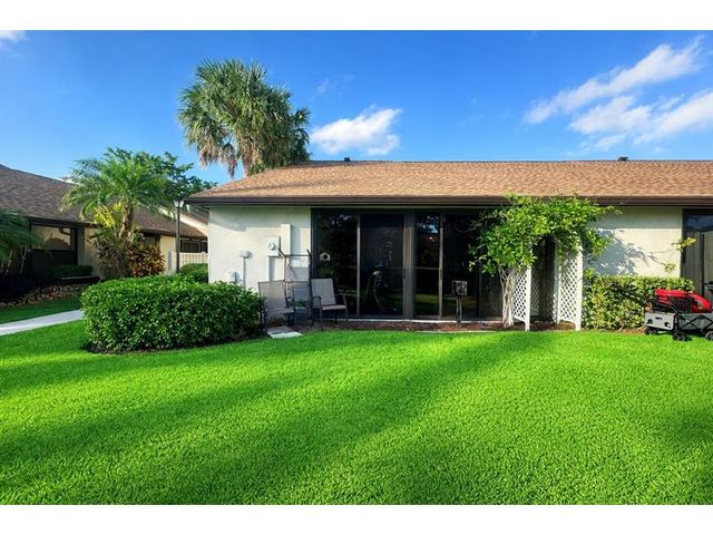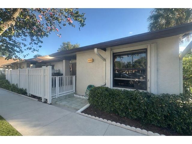 This beautifully updated 2-bedroom, 2-bath corner-unit villa on the water features a versatile enclosed bonus room, ideal for a home office, den, or additional space for a toddler or teen. The home boasts ceramic tile throughout and a fully remodeled kitchen with stainless steel appliances and pull-out drawers. A new A/C was installed in 2024, and the roof was replaced in 2025. The property is equipped with hurricane accordion shutters in the front and roll-down shutters in the rear. Situated on a quiet cul-de-sac, the home offers a welcoming front patio perfect for relaxing or entertaining, and a back view of the water. The HOA includes cable, trash, lawn maintenance, pest control, insurance, roof repairs, common areas, parking, and pool access. No rentals allowed.