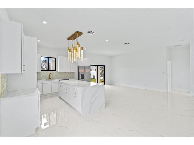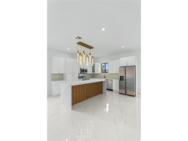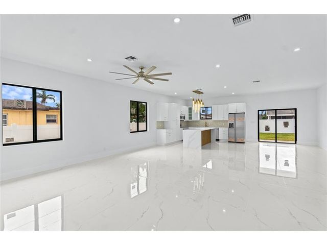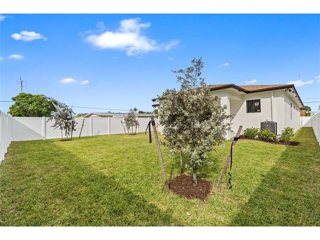 New construction minutes from the beach, Hard Rock Hotel & Casino, Hard Rock Stadium, and Gulfstream Park. This 4BR/3BA home boasts an open-concept split bedroom plan, porcelain tile, impact windows and doors. The chef's kitchen features a quartz waterfall island and stainless steel appliances. The primary suite offers a soaking tub & shower in an enclosed wet area, along with tankless water heater. The expansive lanai extends outdoor living and is ideal for entertaining. A pvc fenced yard, a 2-car garage, high ceilings, and an oversized lot. There is NO HOA. Its proximity to the airport facilitates easy travel, while its central location provides convenient access to beaches, stadiums, shops, dining, and nightlife. This exceptional opportunity will not last long.