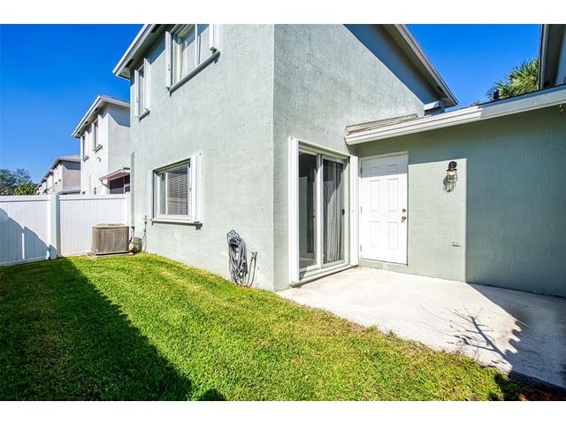 Bright, stylish, and well-maintained 2-bedroom, 2.5-bath townhouse with a 1-car garage and an open living layout designed for everyday comfort. Updated kitchen and bathrooms create a fresh, modern feel throughout. Enjoy a private, fenced patio perfect for morning coffee, relaxing evenings, or entertaining guests. Impact-rated garage door and accordion hurricane shutters provide peace of mind. The AC system features RGF REME-H air purification with UV light for enhanced indoor air quality. Located in a well-kept, pet-friendly community with low HOA fees that include roof maintenance and lawn care, offering low-maintenance living. Residents enjoy access to a pool, tennis and pickleball courts, and a playground, all ideally situated near everyday conveniences. Move-in ready and easy to love.