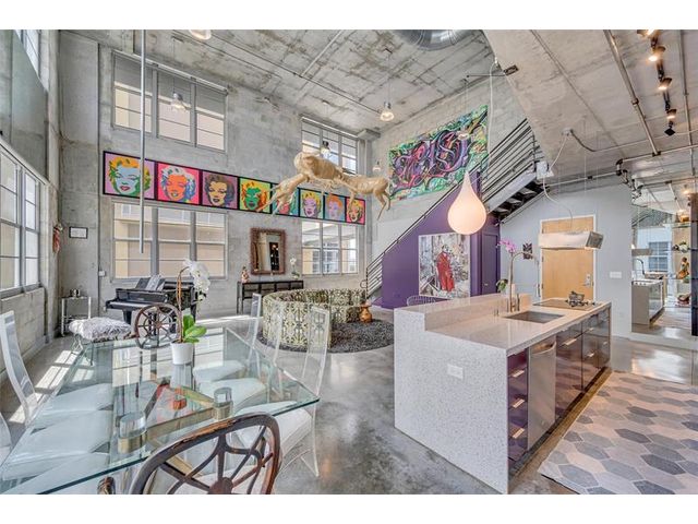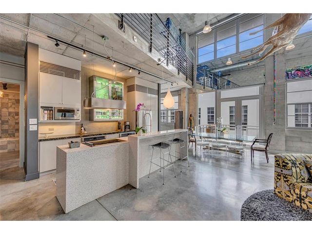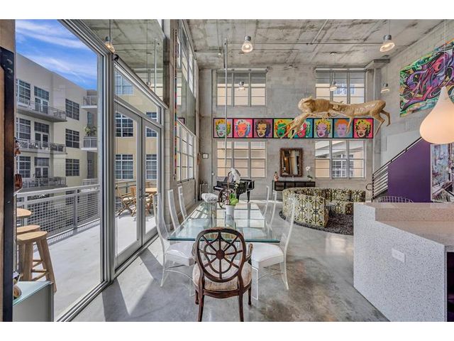 True NYC-Style Loft Penthouse in Flagler Village - Largest 2 story of its kind in the community. Ultimate urban lifestyle in this magnificent, one-of-a-kind two-story penthouse. "true" industrial loft features soaring 22-foot ceilings, impact windows, flooding the open-concept space with natural light and offering expansive city views. Aesthetic highlights include polished concrete floors, exposed ductwork, and a modern gourmet kitchen with designer finishes. Layout offers maximum privacy with 2 oversized primary suites (1 on each level). The 2nd-floor suite overlooks the living area and boasts 2 private terrace with exclusive direct access to rooftop amenities—step right out to the pool, gym, and BBQ area. 2nd park spot avail for purchase 2 pets any size, healthy building no assessments